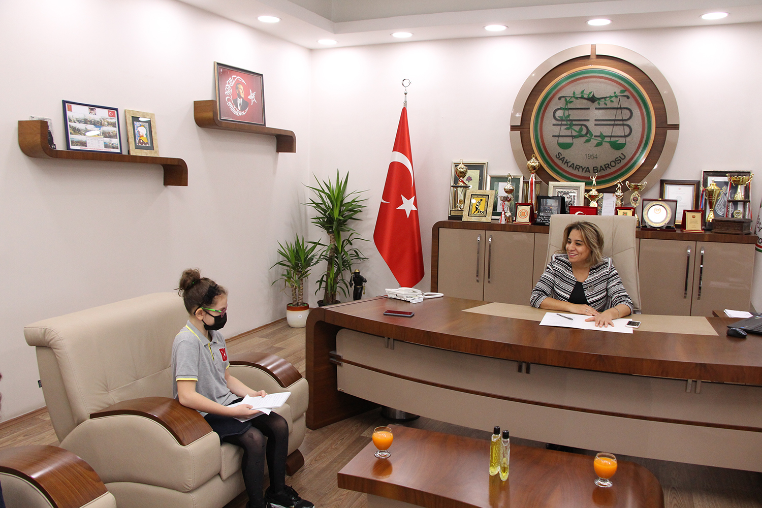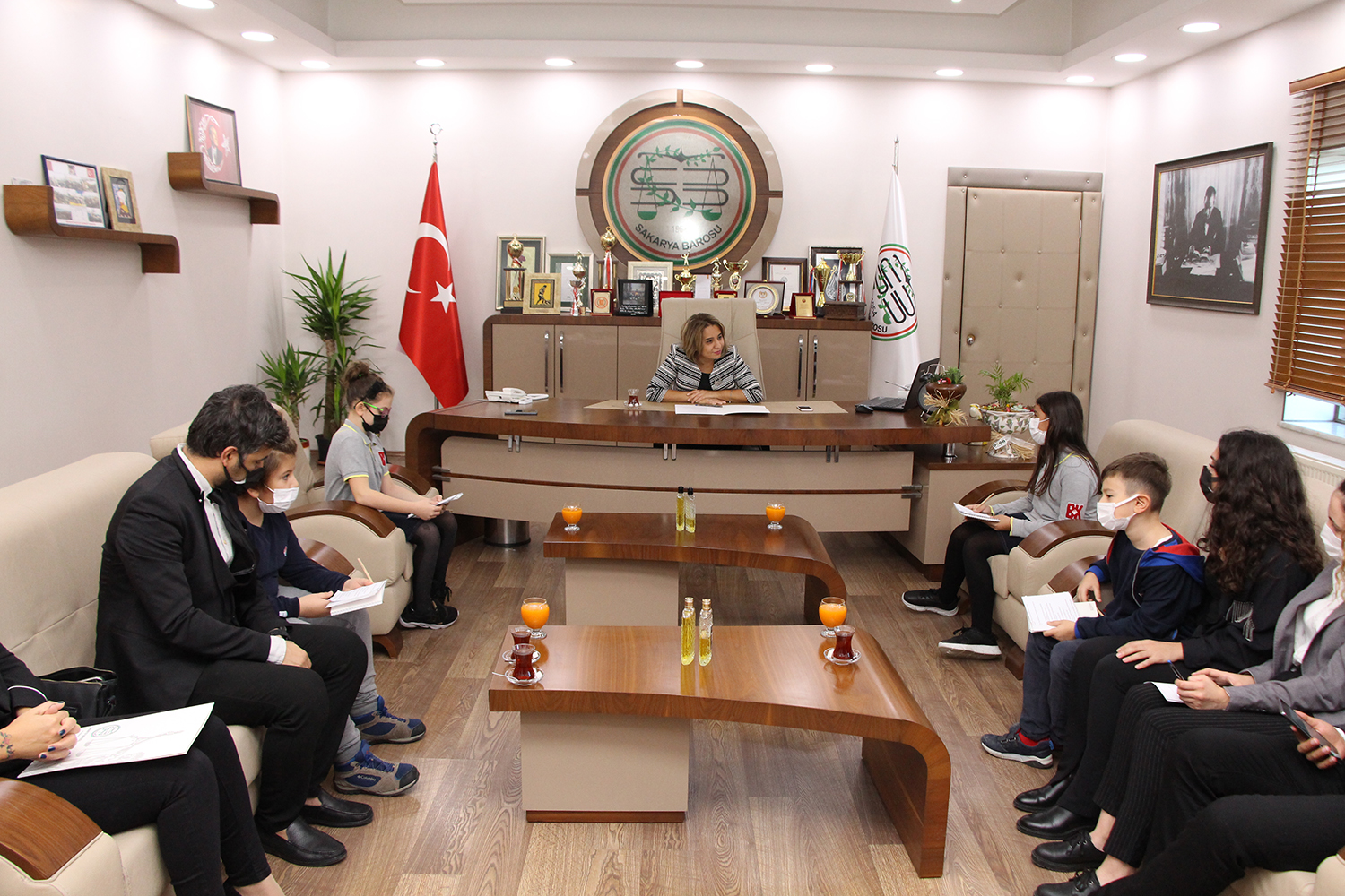 Sakarya Barosu Başkanı Av. İlknur Ebiz Yıldız ve Baro Çocuk Hakları Merkezi Üyeleri, 20 Kasım Dünya Çocuk Hakları Günü nedeniyle Bahçeşehir Koleji öğrencileri ile bir araya geldi ve öğrencilerin çocuk haklarına ilişkin merak ettikleri soruları cevapladı.
