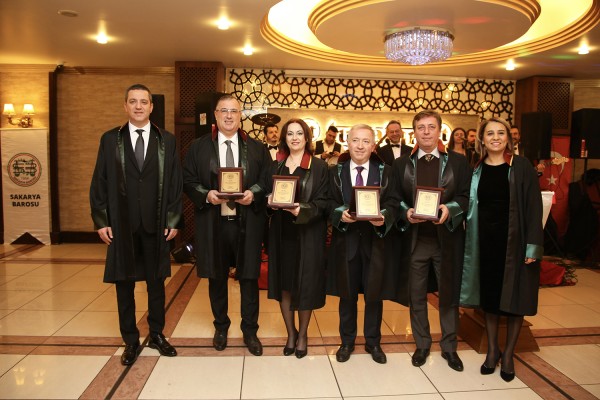 Konuşmaların ardından Sağkan ve Yıldız, Sakarya Barosu’na üye olarak mesleğinde 25. yılını tamamlamış Av. Osman Salih Tekin, Av. Serkan Yılmaz, Av. Yasemin Cevher ve Av. Nazmi Erişir’e plaket takdim etti.