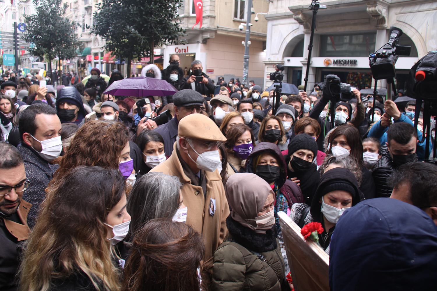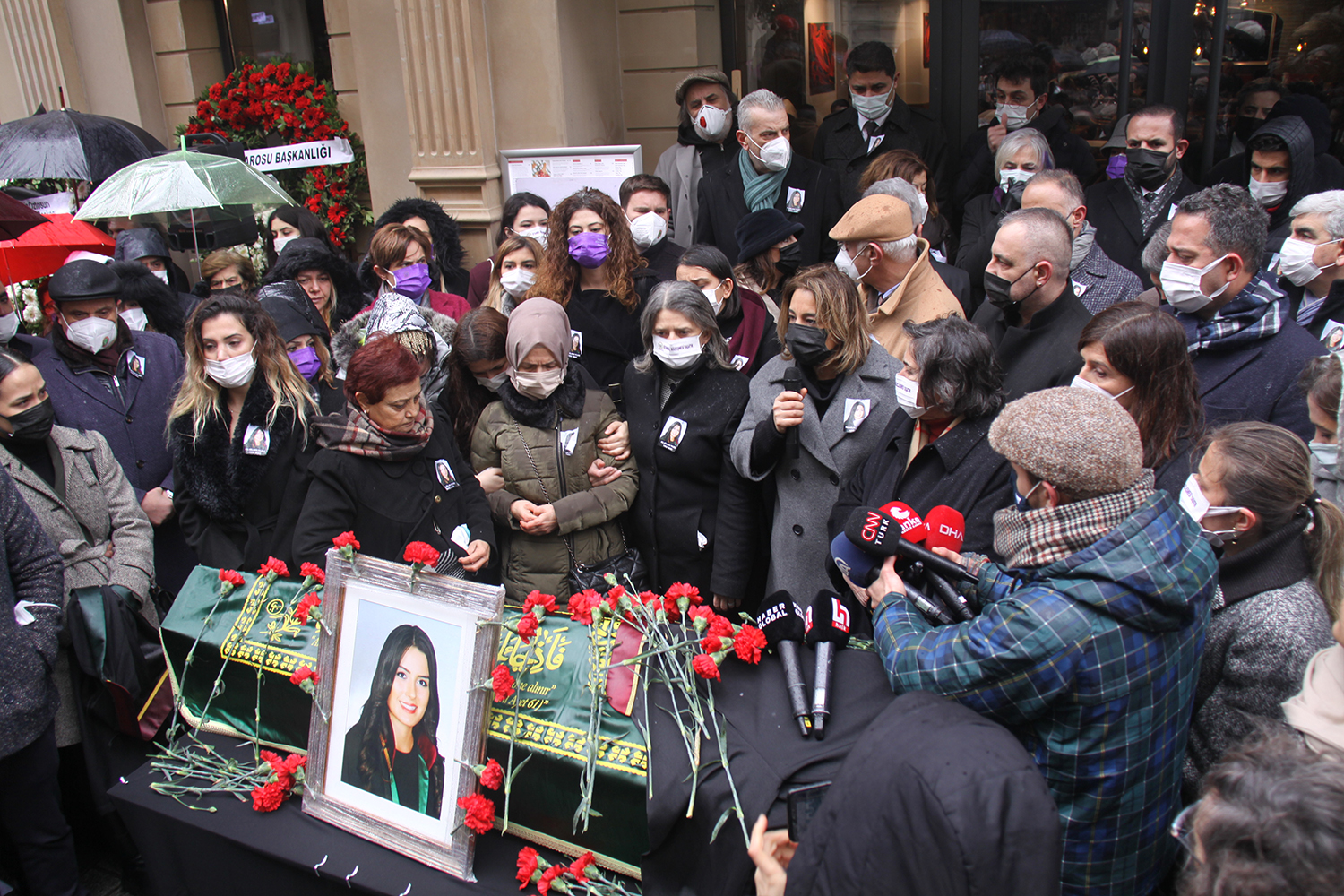 Törende konuşan Başkan Yıldız, “Üzülerek söylüyorum ki ülkemiz kadın mezarlığına döndü. Bu yüzden artık tüm sorumluları görevini yapmaya davet ediyorum. Bugün İstanbul’da soğuk bir gündeyiz ama içimiz cayır cayır yanıyor. Kadın cinayetleri yüzünden ülkemizin her tarafı yangın yeri oldu. Artık herkes görevini yapsın ve yasalar etkin bir şekilde uygulansın. Meslektaşımıza Allah’tan rahmet diliyorum. Başta meslektaşımızın ailesi olmak üzere hepimizin başı sağ olsun” dedi.