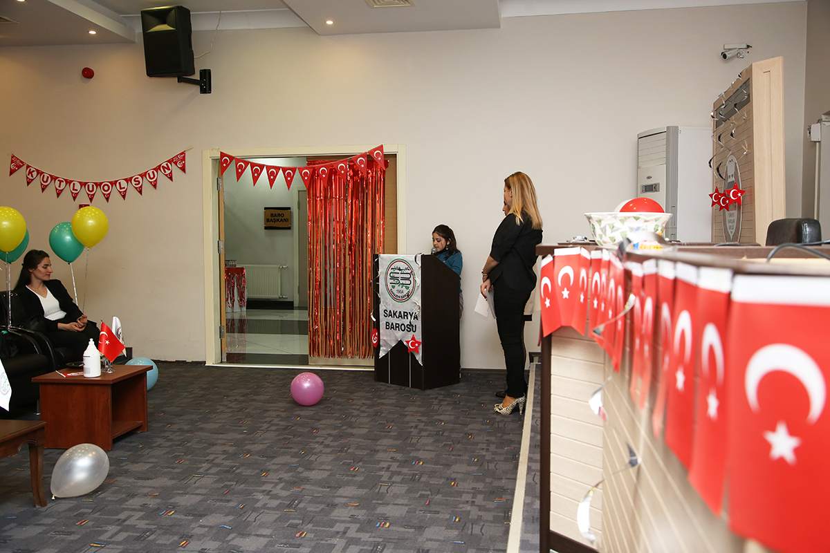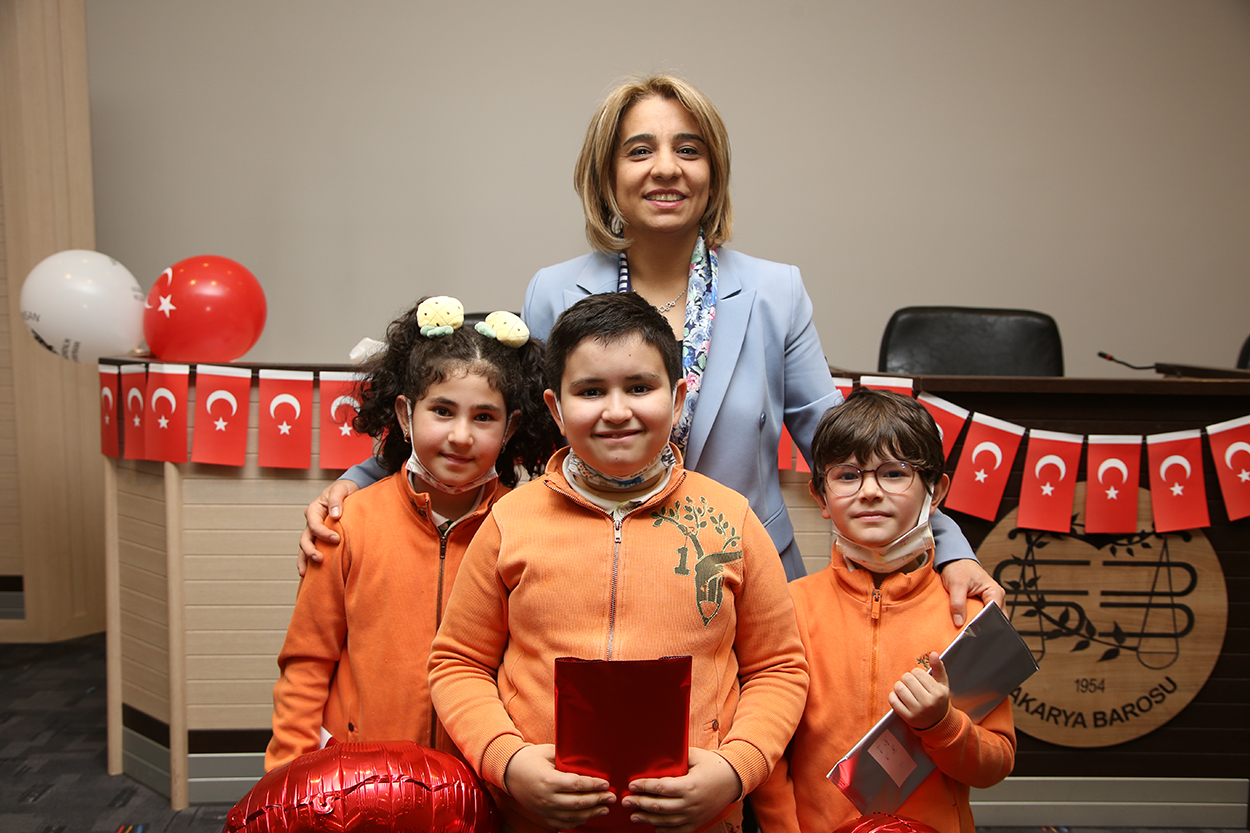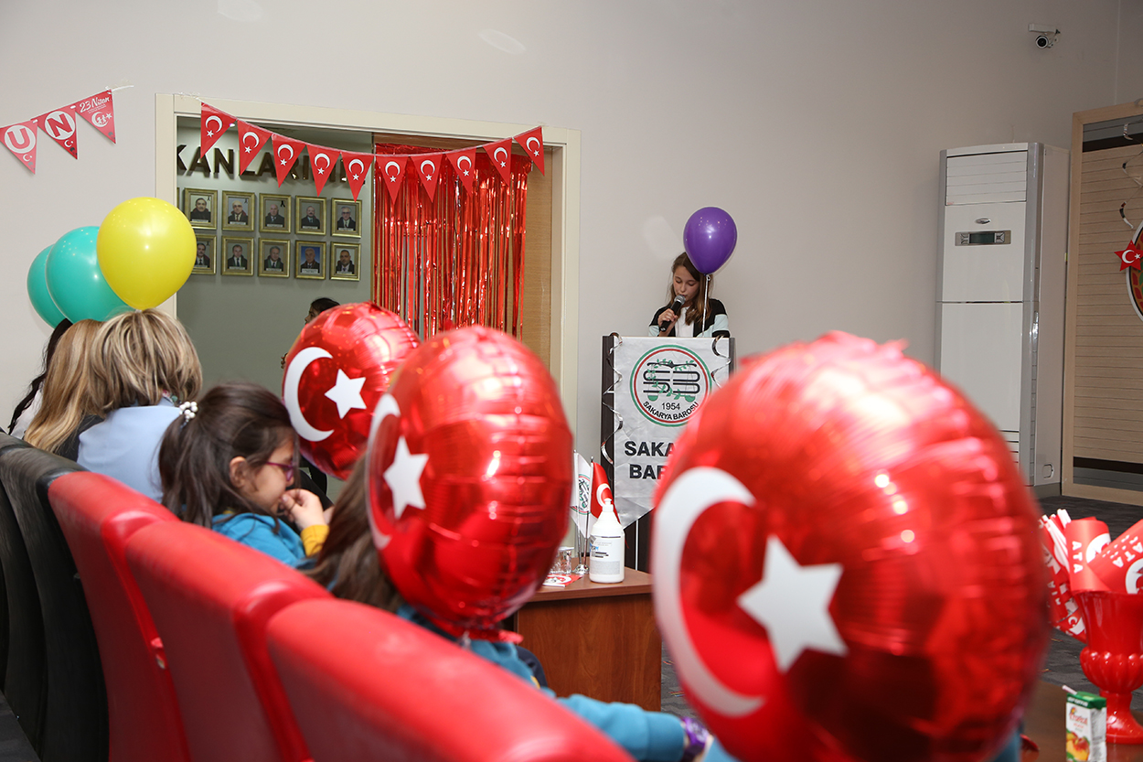Sakarya Barosu Çocuk Hakları Merkezi, 23 Nisan Ulusal Egemenlik ve Çocuk Bayramı nedeniyle ‘Söz Çocuklarda’ başlıklı çocuk forumu etkinliği düzenledi. Saygı duruşu ve İstiklal Marşı’nın okunmasıyla başlayan etkinlikte, çocuklar, 23 Nisan’a, barolara, avukatlara ve hukuka ilişkin düşüncelerini dile getirdiler. Etkinliğin ardından çocuklar, Baro Başkanlığı koltuğuna oturarak hatıra fotoğrafı çektirdiler.