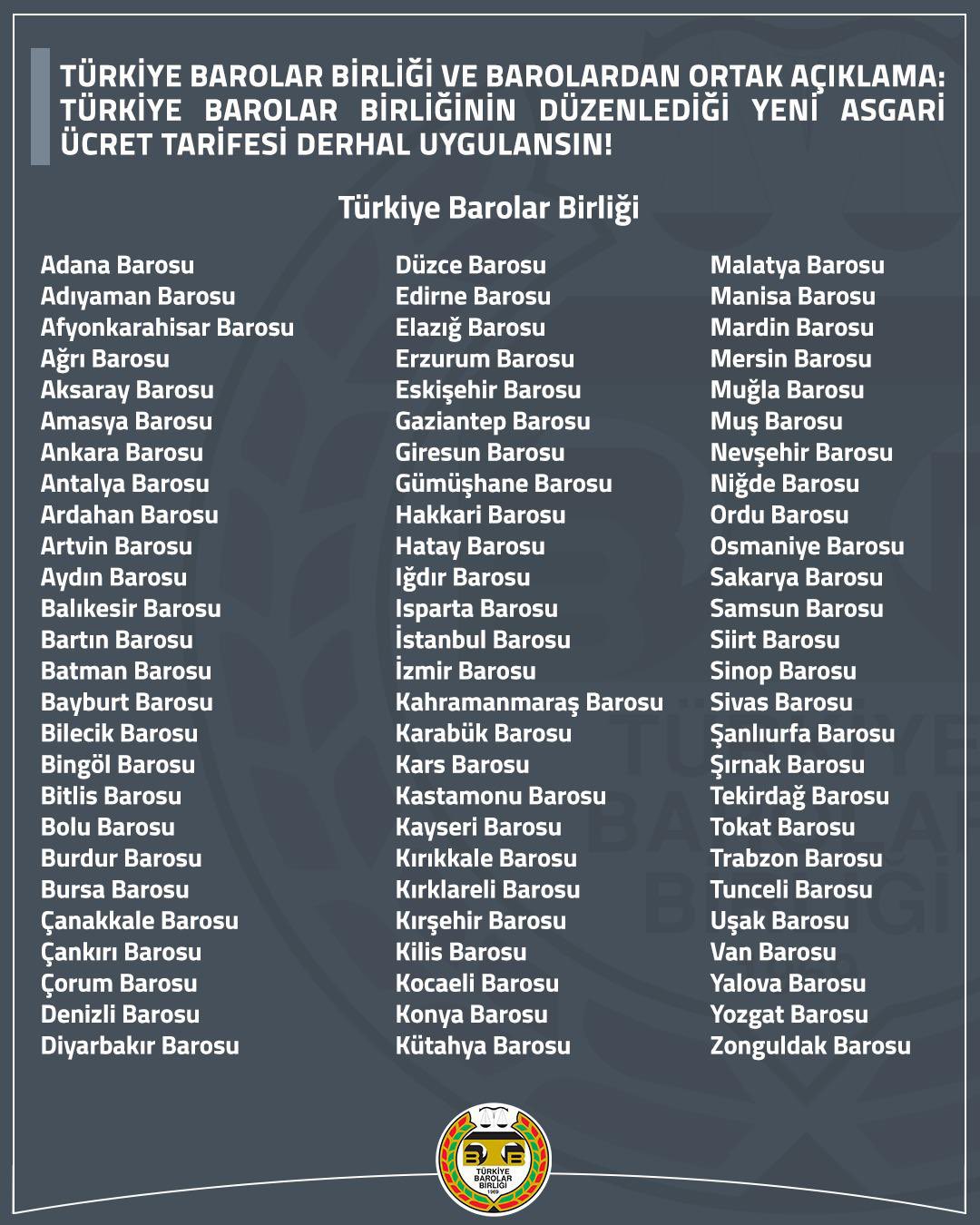 TÜRKİYE BAROLAR BİRLİĞİ VE BAROLARDAN ORTAK AÇIKLAMA: