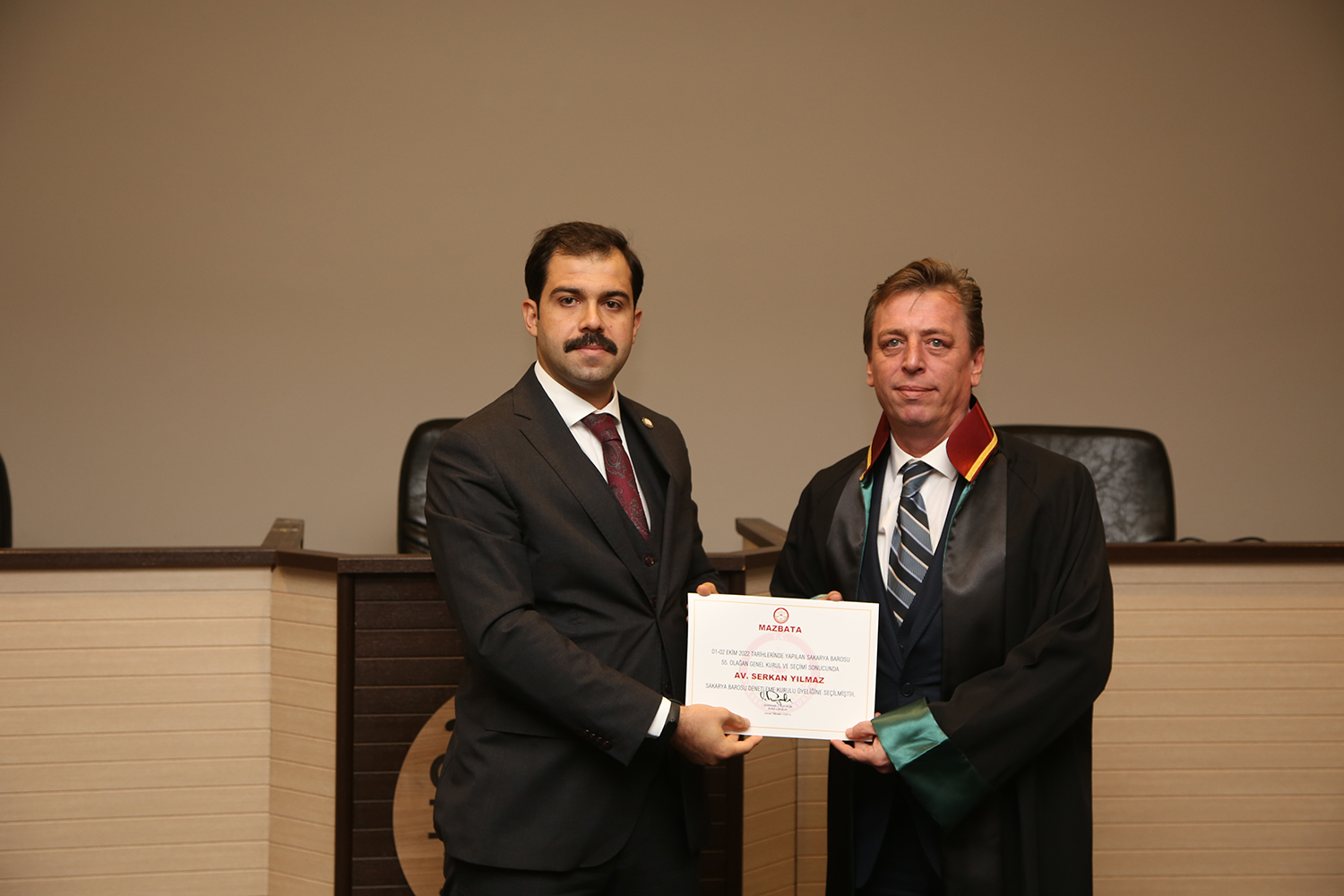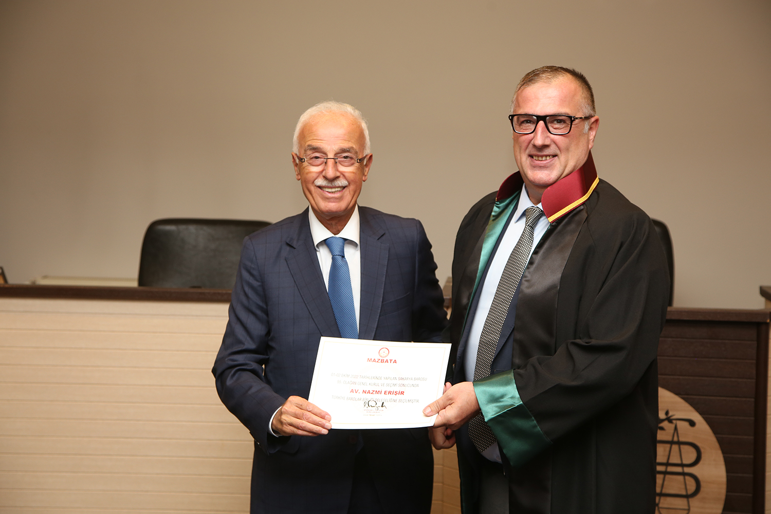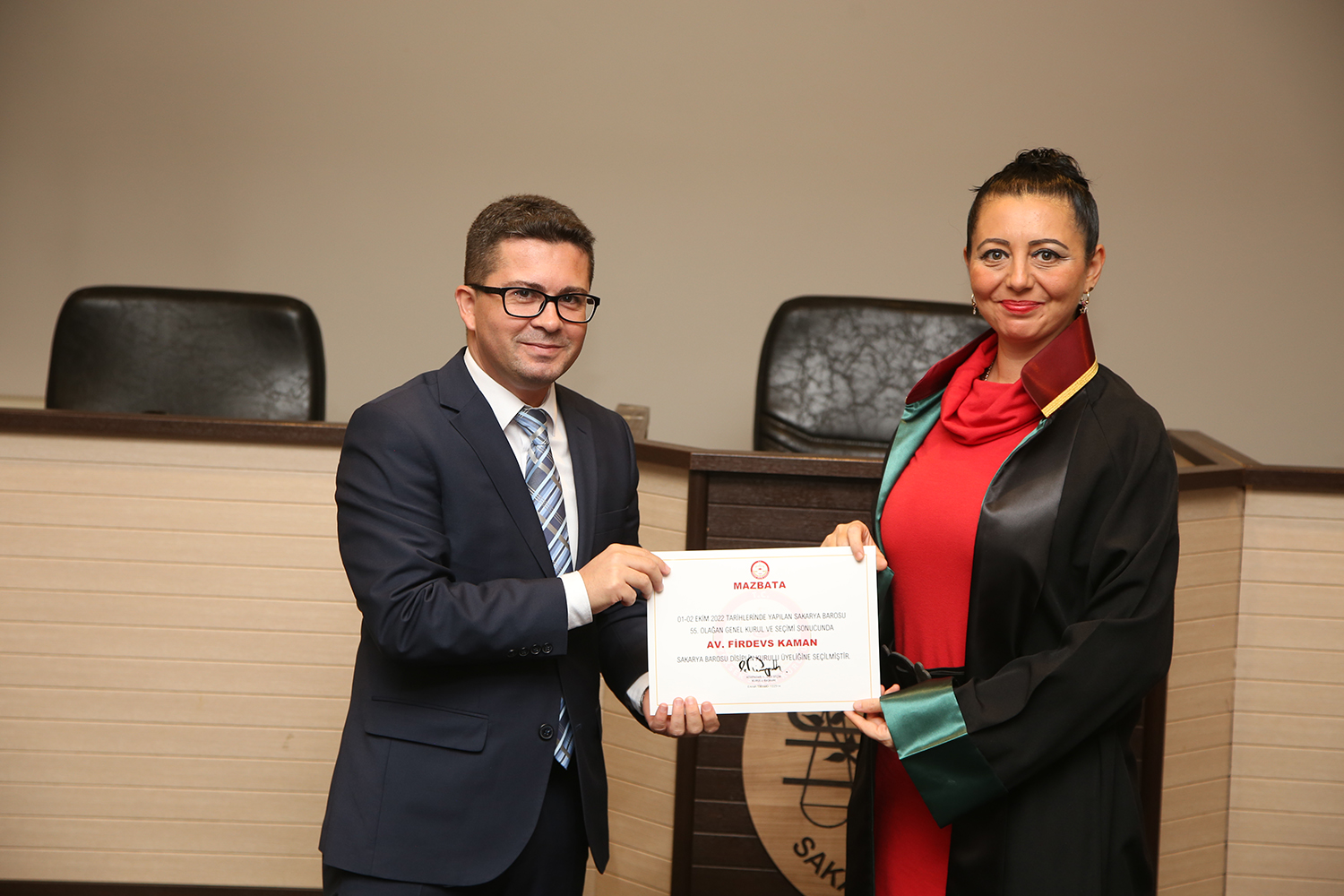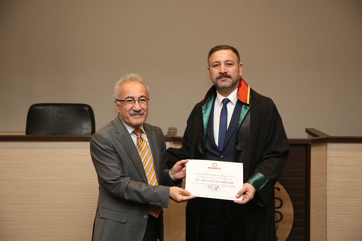 1-2 Ekim tarihlerinde yapılan Sakarya Barosu 55. Seçimli Olağan Genel Kurulu sonucunda seçilen Sakarya Barosu’nun yeni yönetimi, kurul üyeleri ve delegeleri, Sakarya Barosu Konferans Salonu’nda düzenlenen Mazbata Töreni ile mazbatalarını teslim aldı.