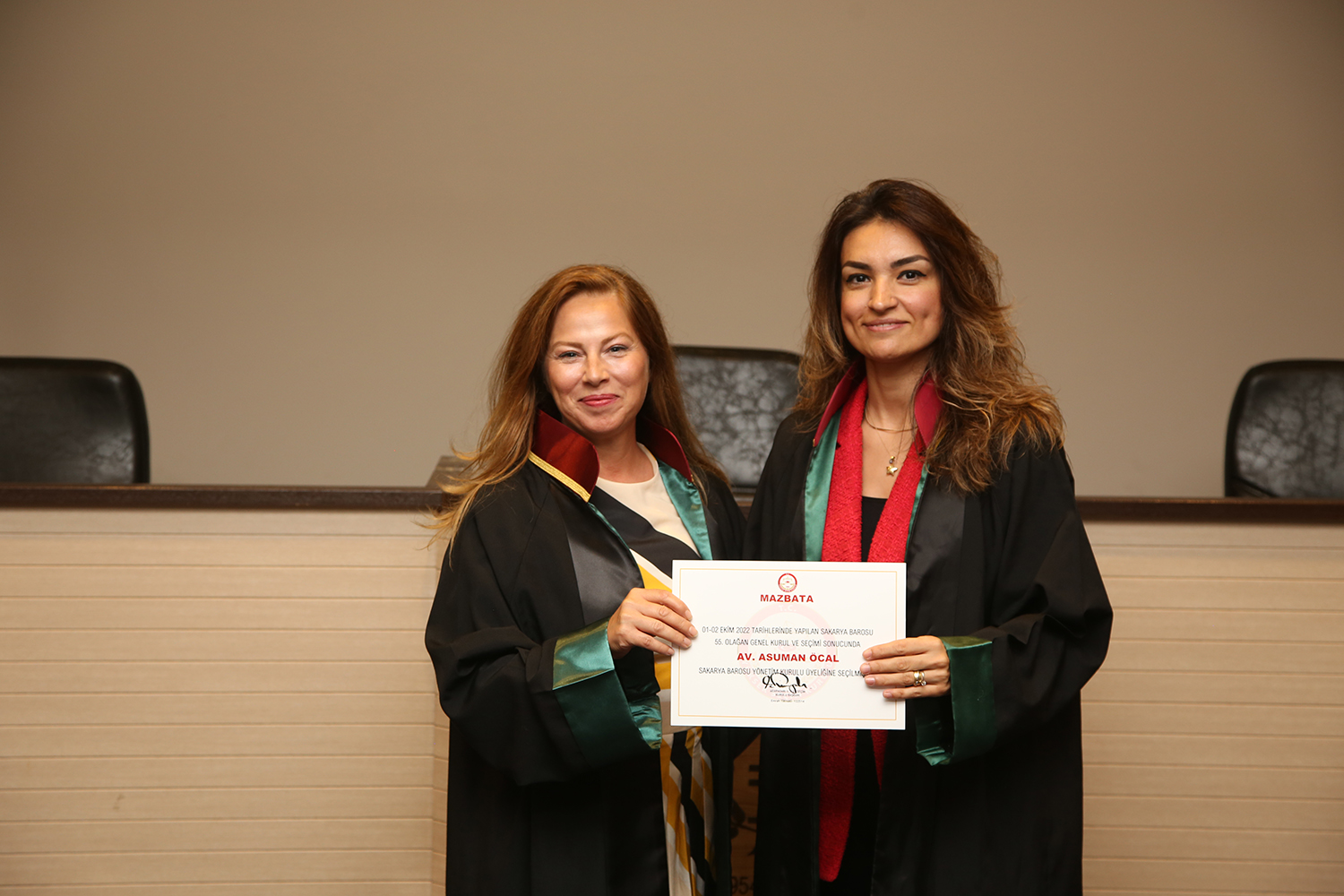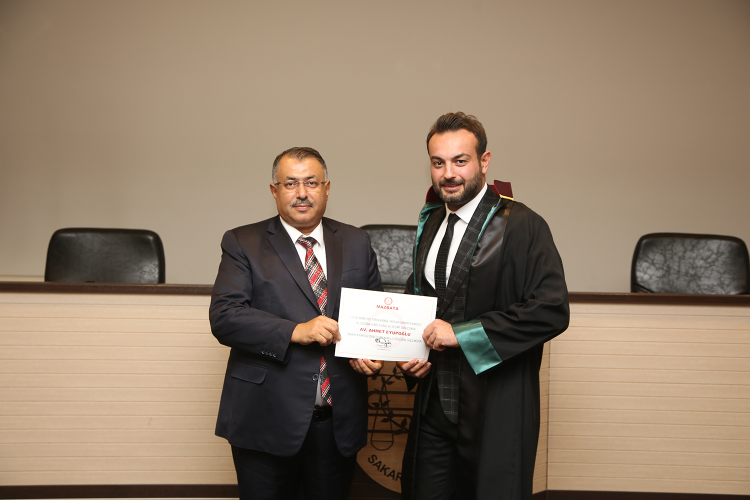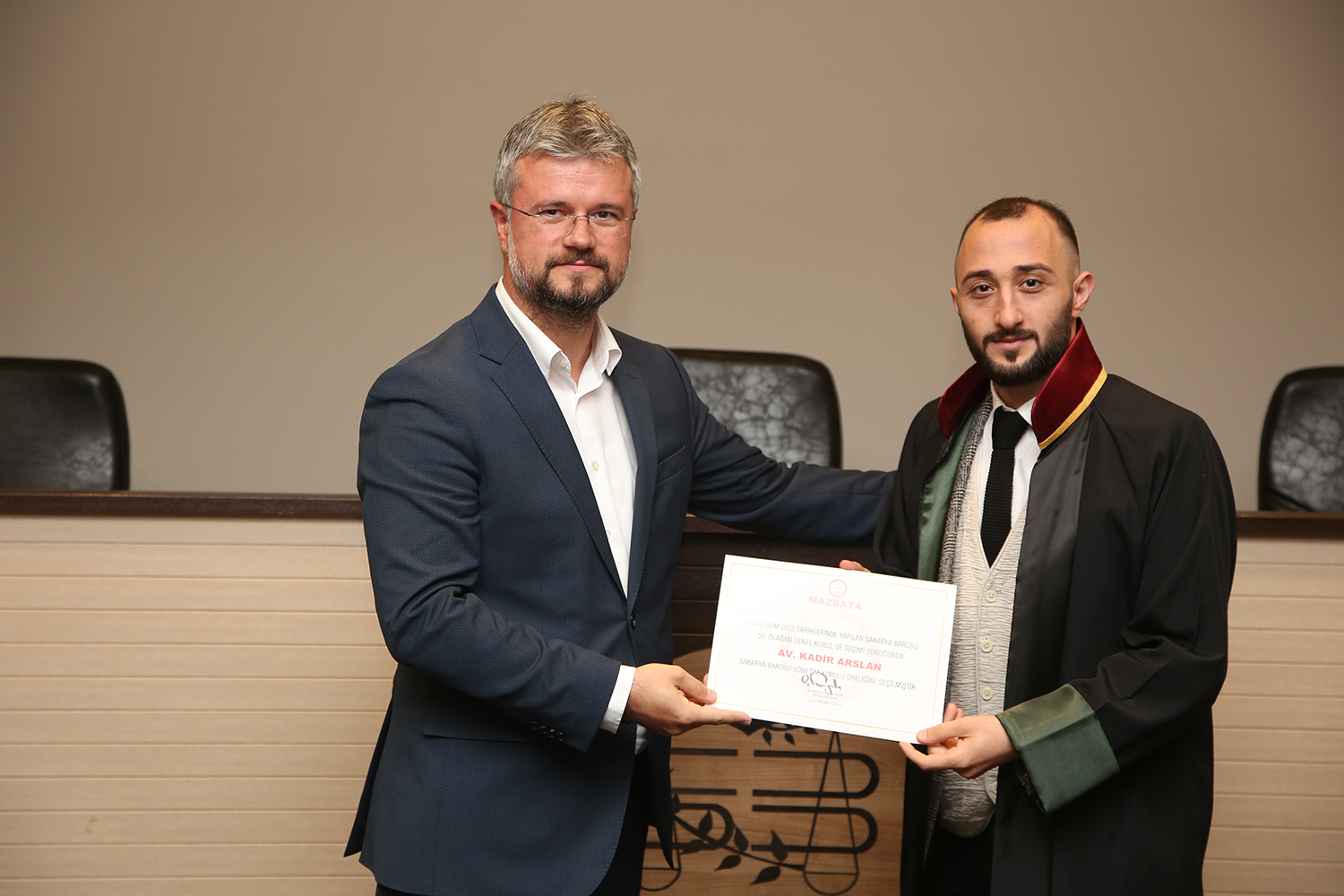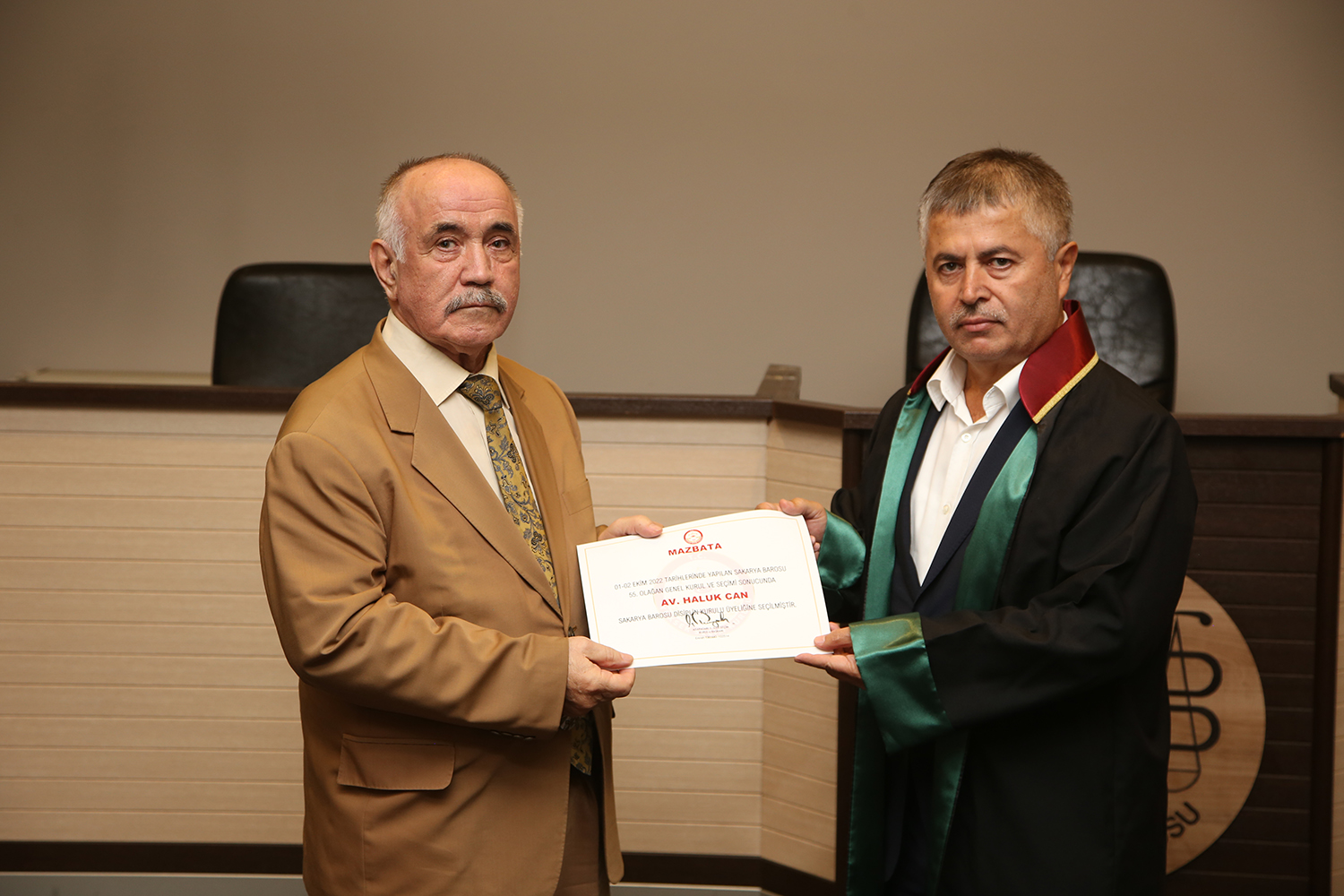 1-2 Ekim tarihlerinde yapılan Sakarya Barosu 55. Seçimli Olağan Genel Kurulu sonucunda seçilen Sakarya Barosu’nun yeni yönetimi, kurul üyeleri ve delegeleri, Sakarya Barosu Konferans Salonu’nda düzenlenen Mazbata Töreni ile mazbatalarını teslim aldı.