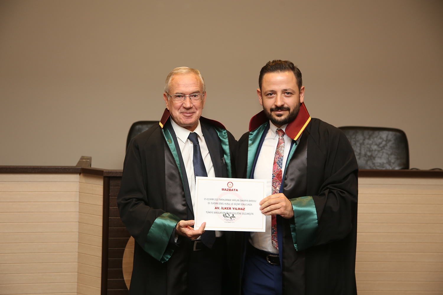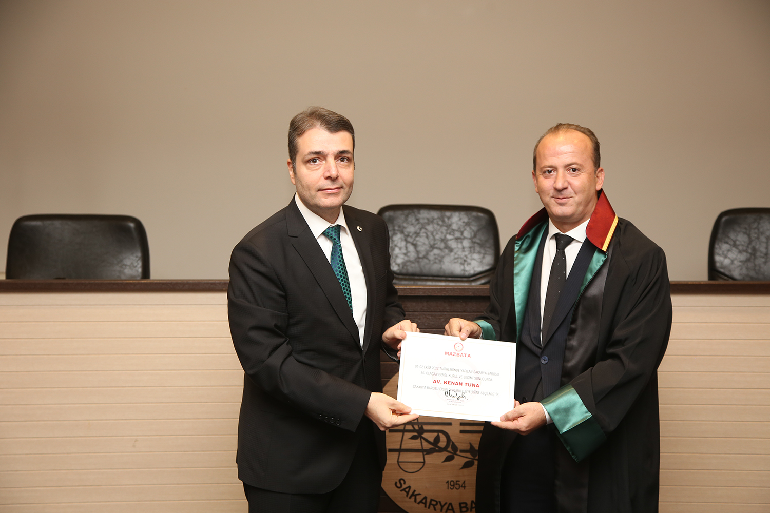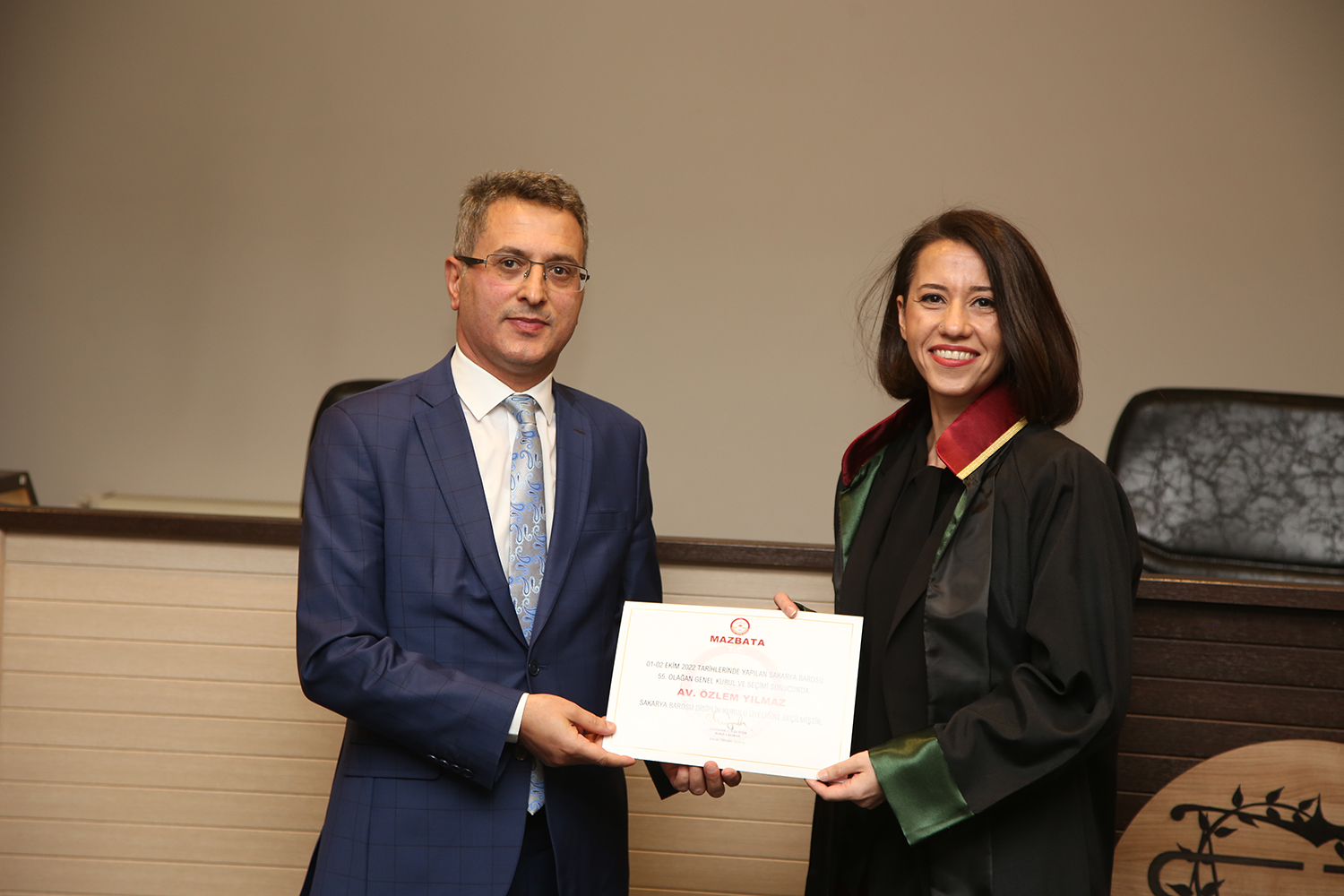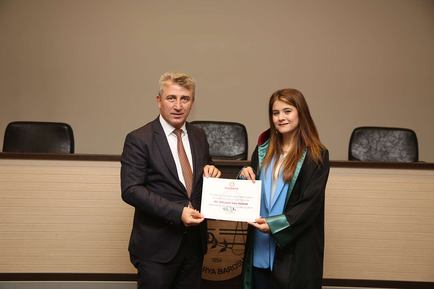 1-2 Ekim tarihlerinde yapılan Sakarya Barosu 55. Seçimli Olağan Genel Kurulu sonucunda seçilen Sakarya Barosu’nun yeni yönetimi, kurul üyeleri ve delegeleri, Sakarya Barosu Konferans Salonu’nda düzenlenen Mazbata Töreni ile mazbatalarını teslim aldı.