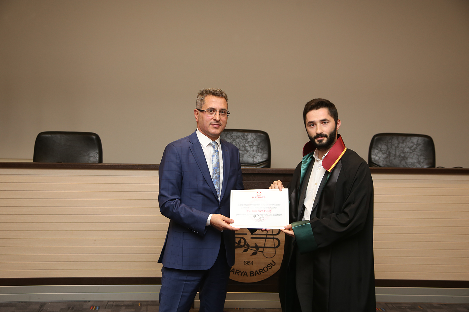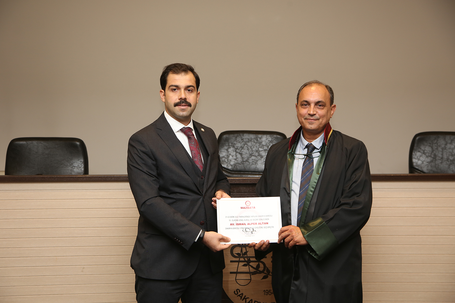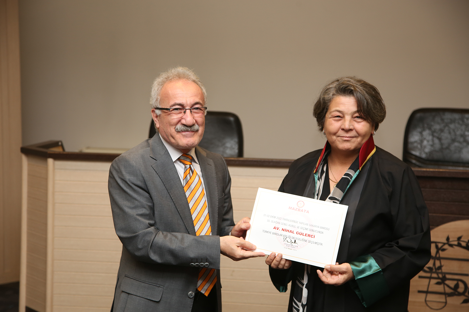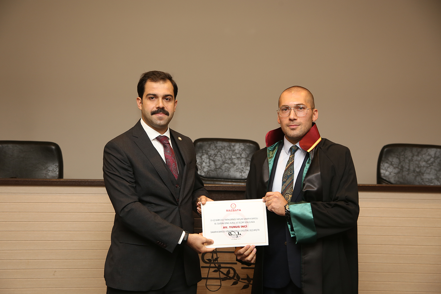 1-2 Ekim tarihlerinde yapılan Sakarya Barosu 55. Seçimli Olağan Genel Kurulu sonucunda seçilen Sakarya Barosu’nun yeni yönetimi, kurul üyeleri ve delegeleri, Sakarya Barosu Konferans Salonu’nda düzenlenen Mazbata Töreni ile mazbatalarını teslim aldı.