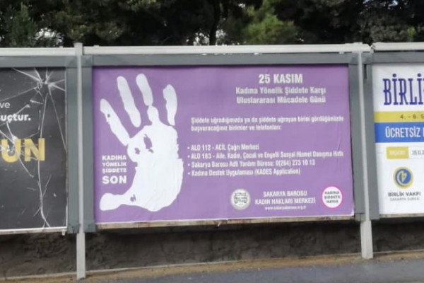 25 Kasım Kadına Yönelik Şiddete Karşı Uluslararası Mücadele Günü nedeniyle Sakarya Barosu Kadın Hakları Merkezi’nin hazırlamış olduğu bilgilendirme görselleri, şehrin çeşitli bölgelerindeki billboardlarda yayınlandı.