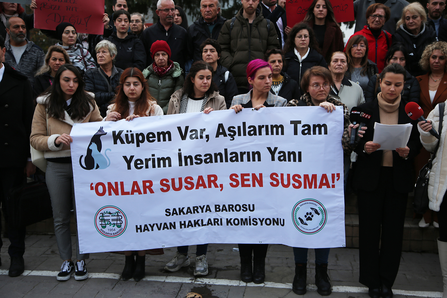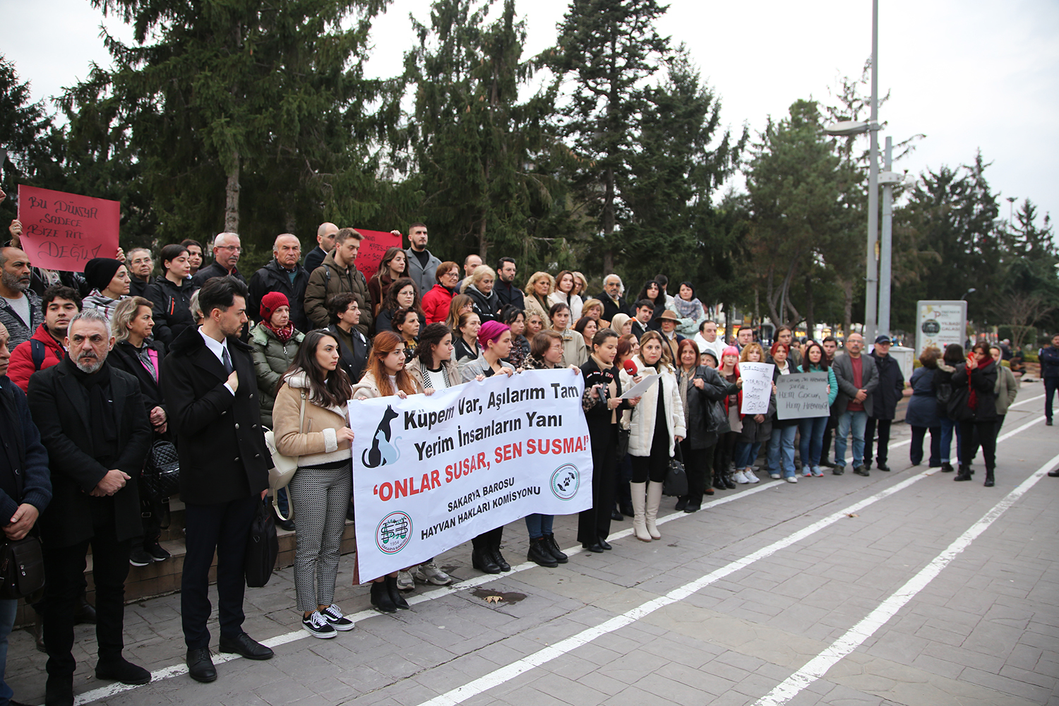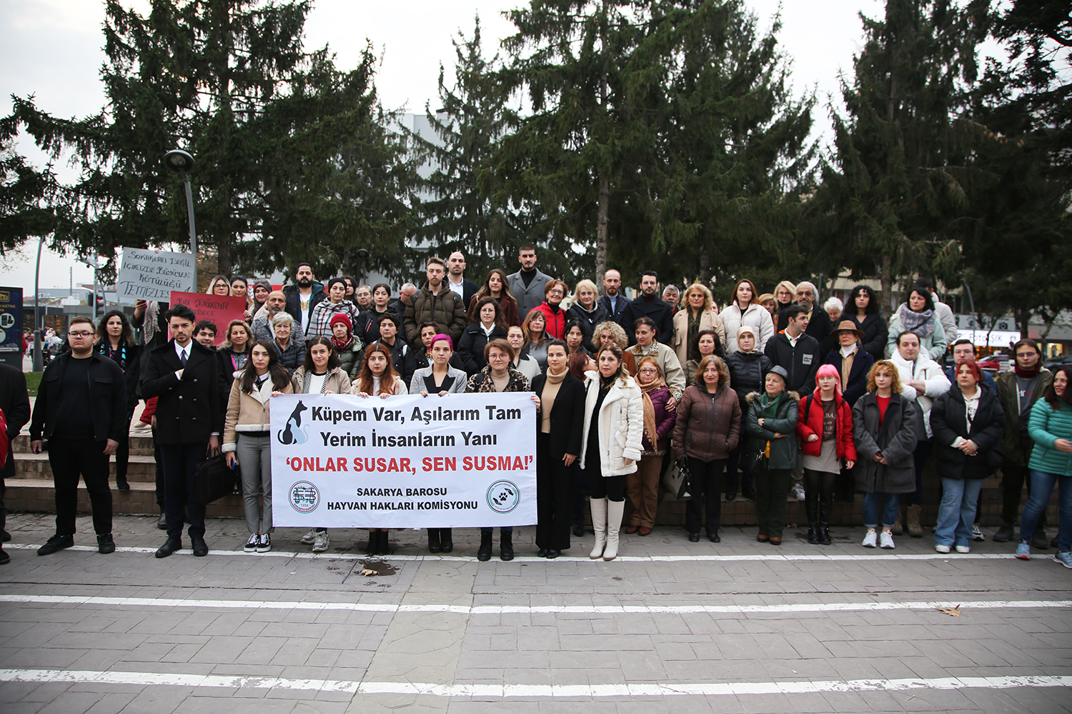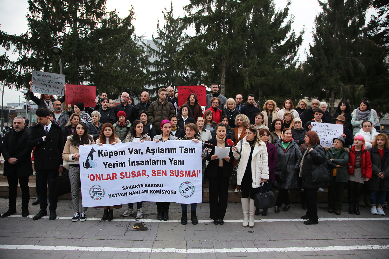 Sakarya Barosu Hayvan Hakları Komisyonu, son günlerde yapılan hayvan hakkı ihlallerine tepki göstermek amacıyla AKM önünde basın açıklaması düzenledi. Komisyon Başkanı Av. Zeynep Özder tarafından yapılan açıklamaya Merkez Üyeleri, avukatlar ve vatandaşlar katıldı.