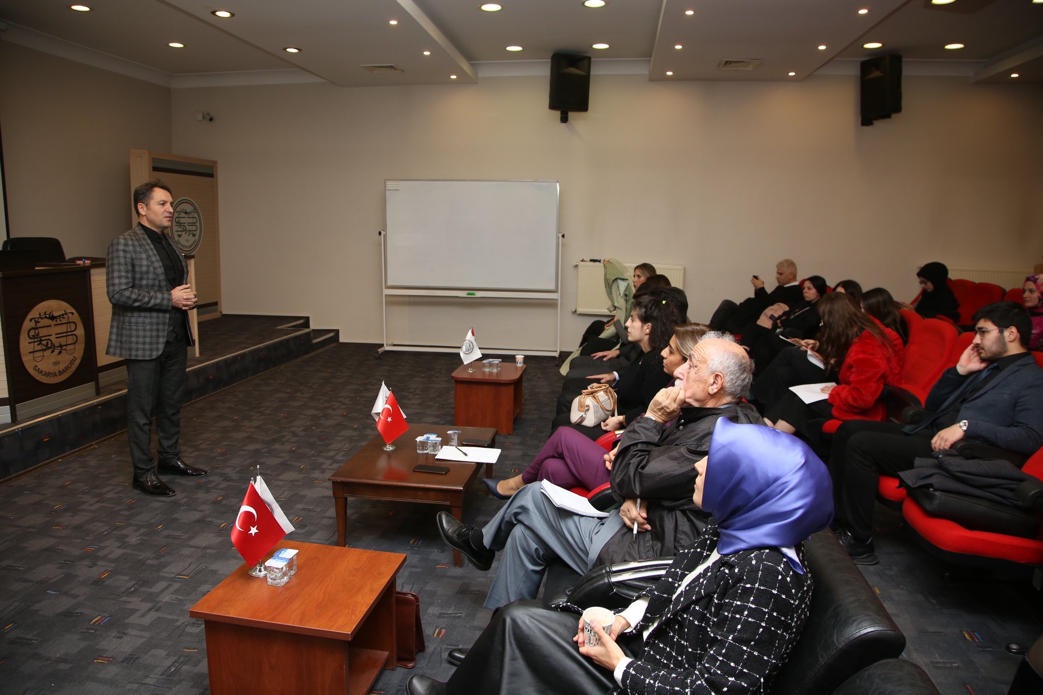 Sakarya Barosu CMK Atölye Çalışmaları kapsamında düzenlenen eğitim programında, SAÜ Hukuk Fakültesi’den Dr. Öğr. Üyesi Mehmet Saydam ve Baro CMK-Adli Yardım Koordinatörü Av. Alim Mert, ‘Ceza Muhakemesinde Esas Hakkında Savunma’ konusunu anlattı.