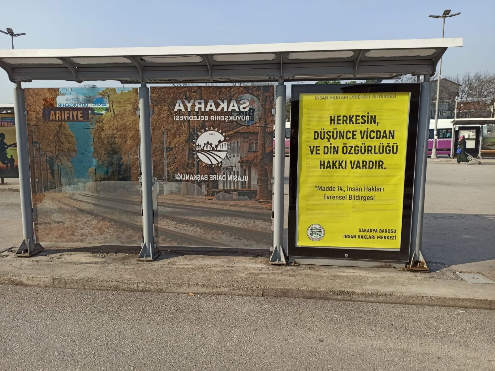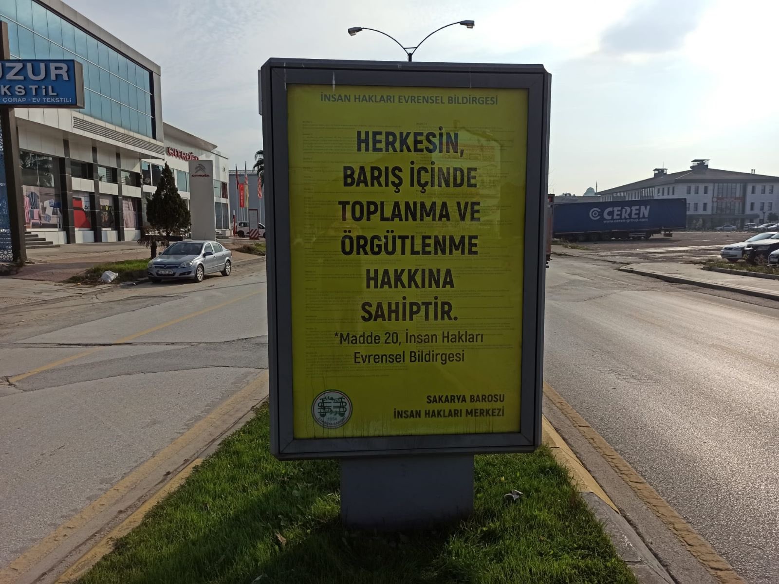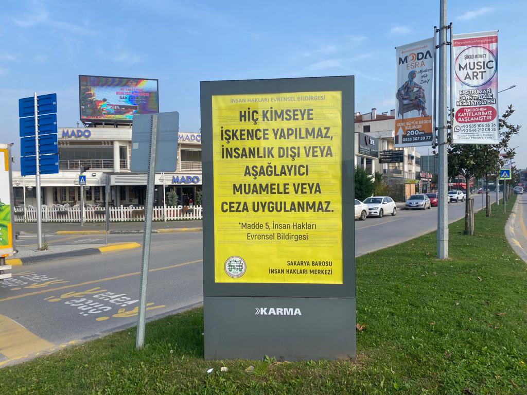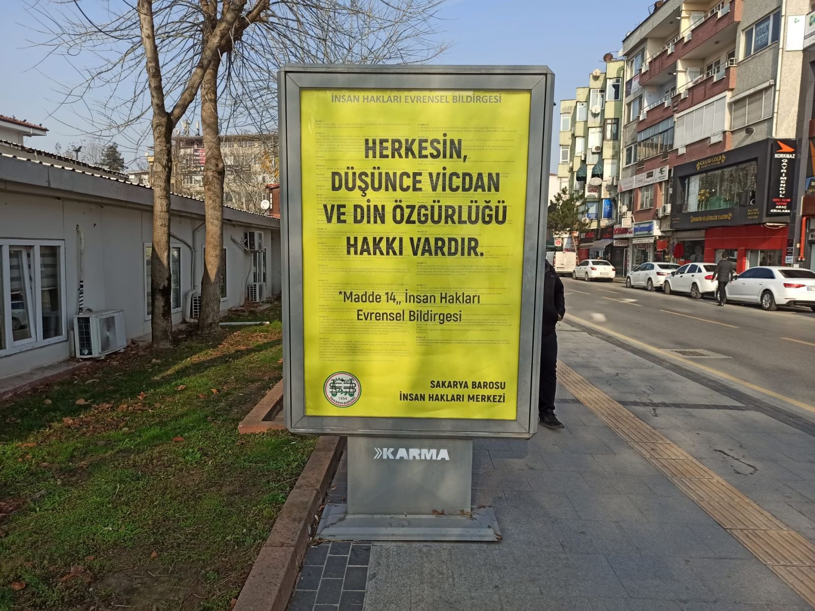 10 Aralık Dünya İnsan Hakları Günü kapsamında insan haklarını hatırlatmak ve farkındalık yaratmak amacıyla Sakarya Barosu İnsan Hakları Merkezi’nin hazırladığı görseller, şehrimizin birçok bölgesindeki raketlerde yerini aldı.