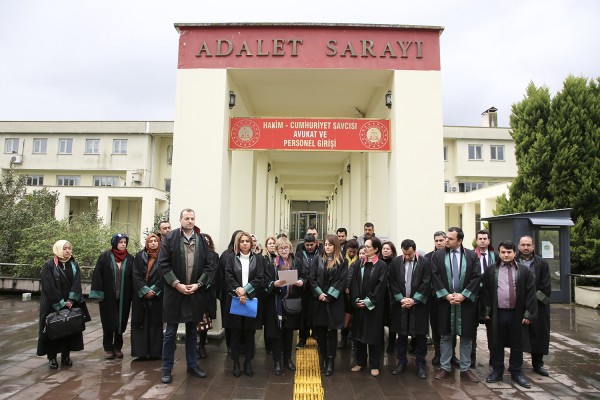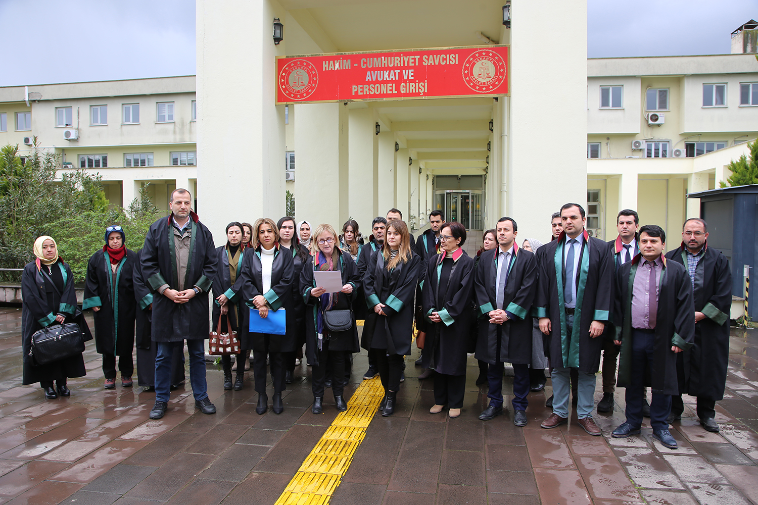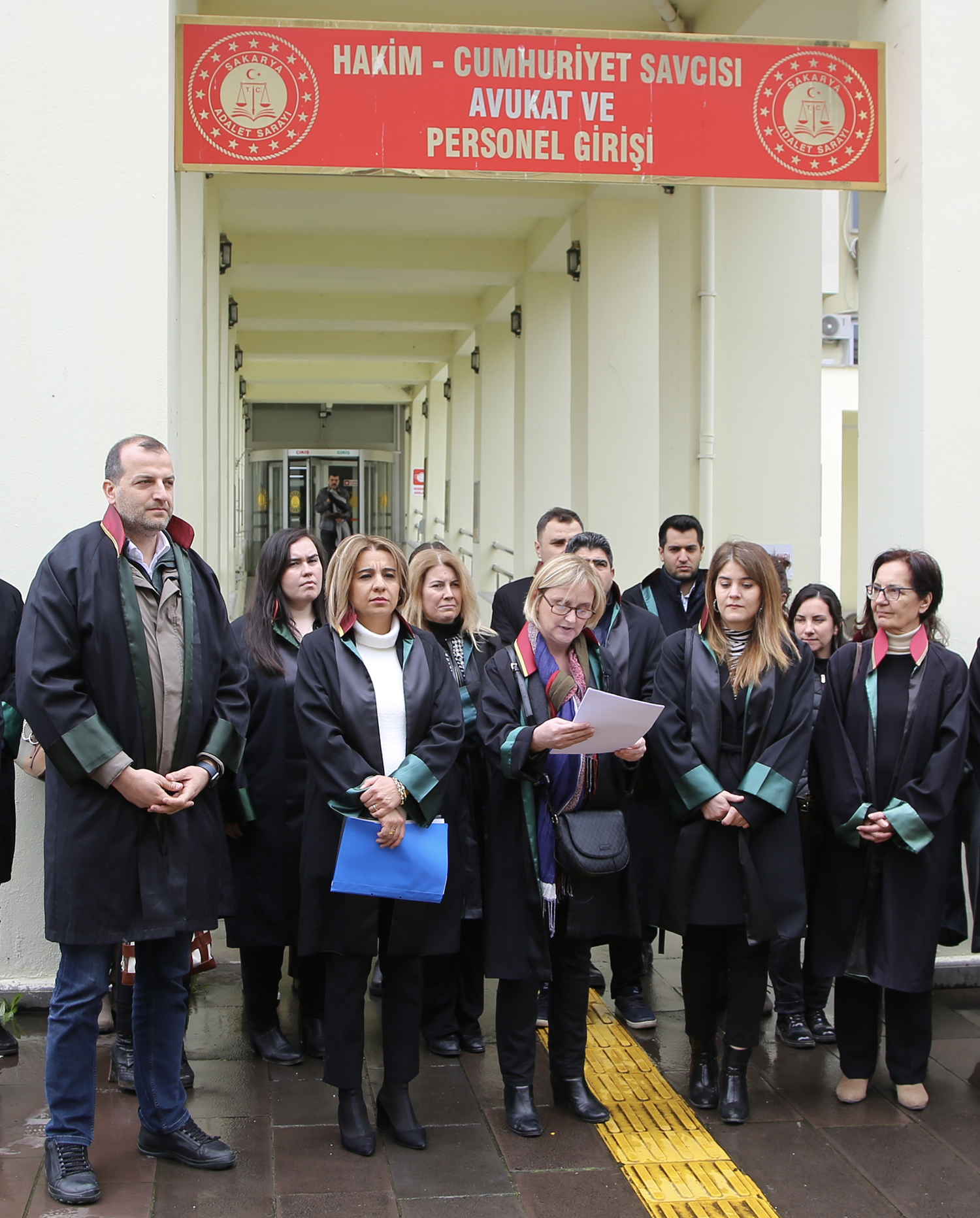 Sakarya Barosu Kamu Avukatları Komisyonu tarafından Sakarya Adliyesi’nde basın açıklaması düzenlendi. Açıklamaya, Baro Başkanı Av. İlknur Ebiz Yıldız, Başkan Yardımcısı Av. Gülşah Baş Duran, Genel Sekreter Av. Talha Toçoğlu ve çok sayıda avukat katıldı.