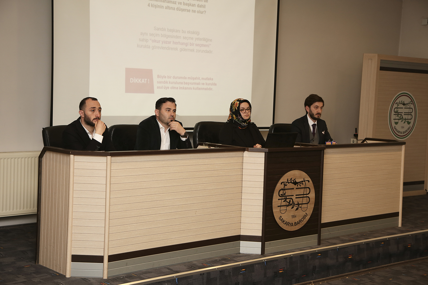Sakarya Barosu tarafından 28 Mayıs Pazar günü yapılacak Cumhurbaşkanlığı 2. tur seçimleri için ‘Seçim Güvenliği’ eğitimi düzenlendi. Eğitim, Baro'nun Konferans Salonu'nda gerçekleştirildi.