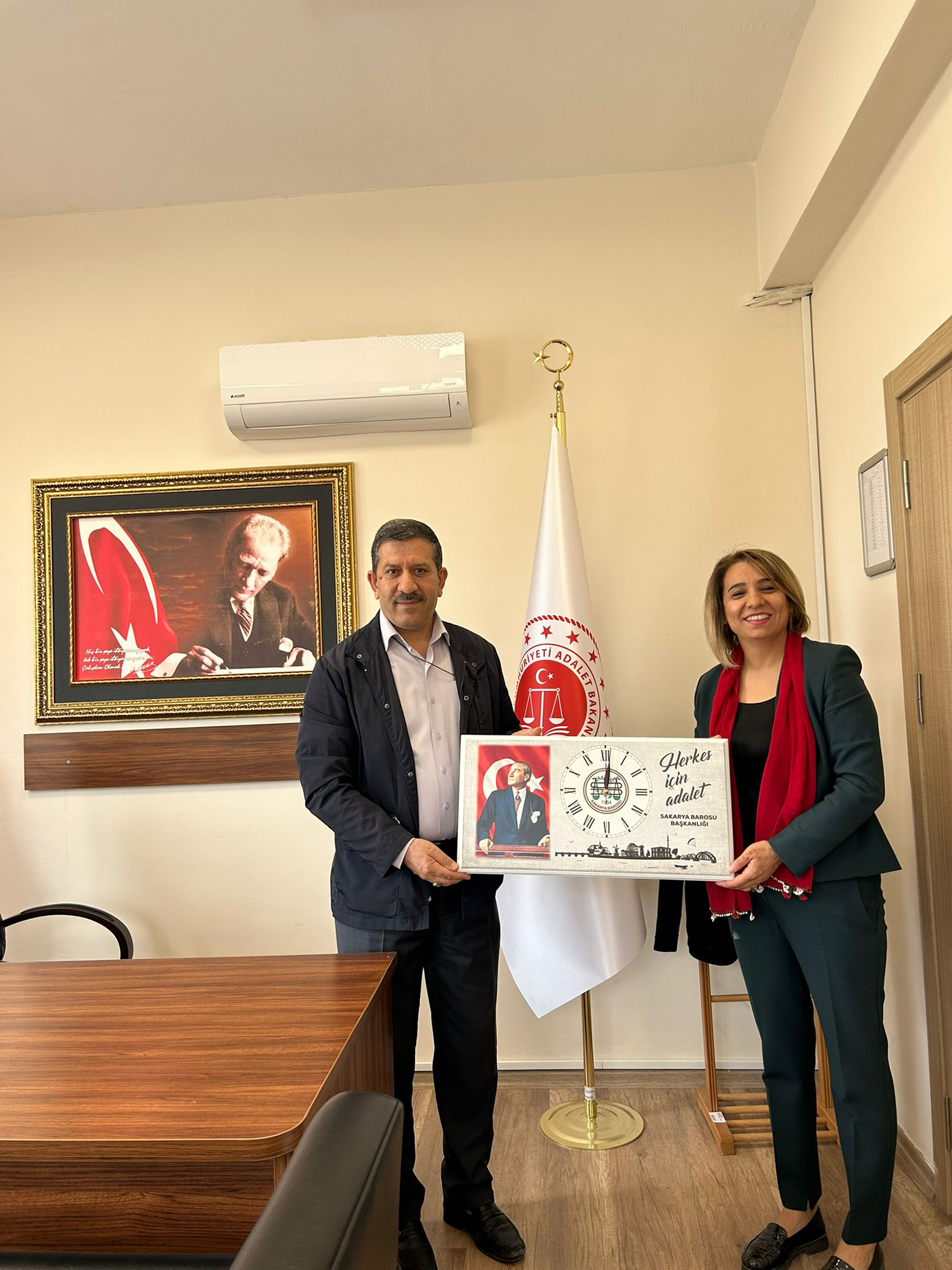 Yıldız ziyaretlerde kendilerine eşlik ederek her konuda yardımcı olan cezaevi müdürlerine teşekkür ederek Sakarya Barosu’nun ‘Adalet Saatini’ takdim etti.