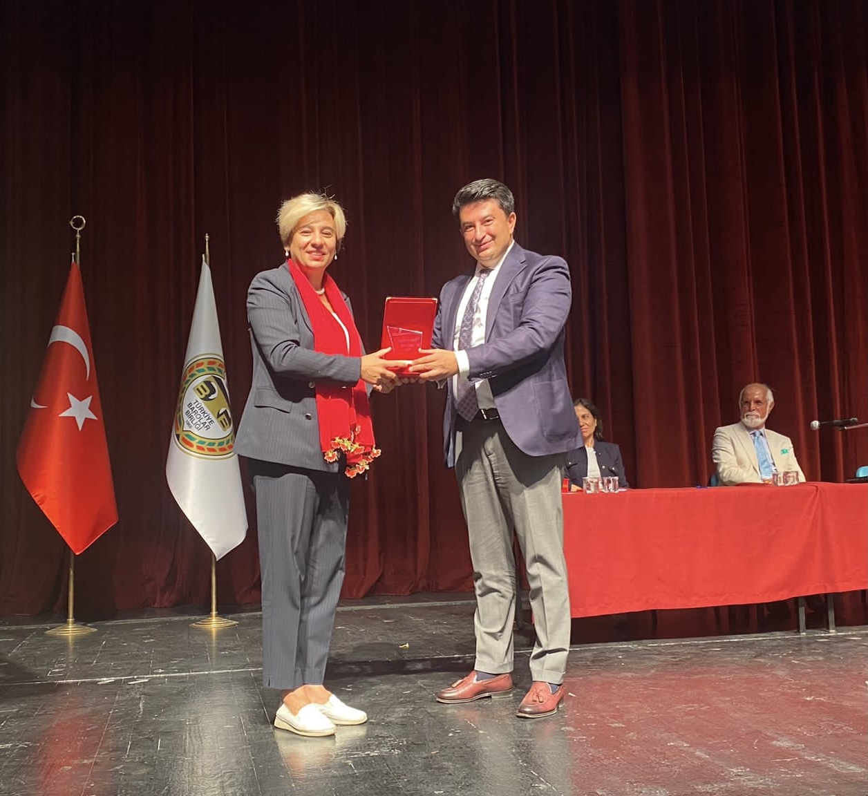 Baro Başkanı Yıldız, söyleşinin sonunda katkılarından dolayı Prof. Dr. Devrim Güngör’e teşekkür ederek plaket takdim etti.