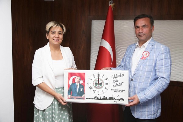 Sakarya Barosu Başkanı Av. İlknur Ebiz Yıldız, CMK ve Adli Yardım Koordinatörü Av. Alim Mert ile birlikte Geyve Belediye Başkanı Metin Atalay’ı ziyaret etti.