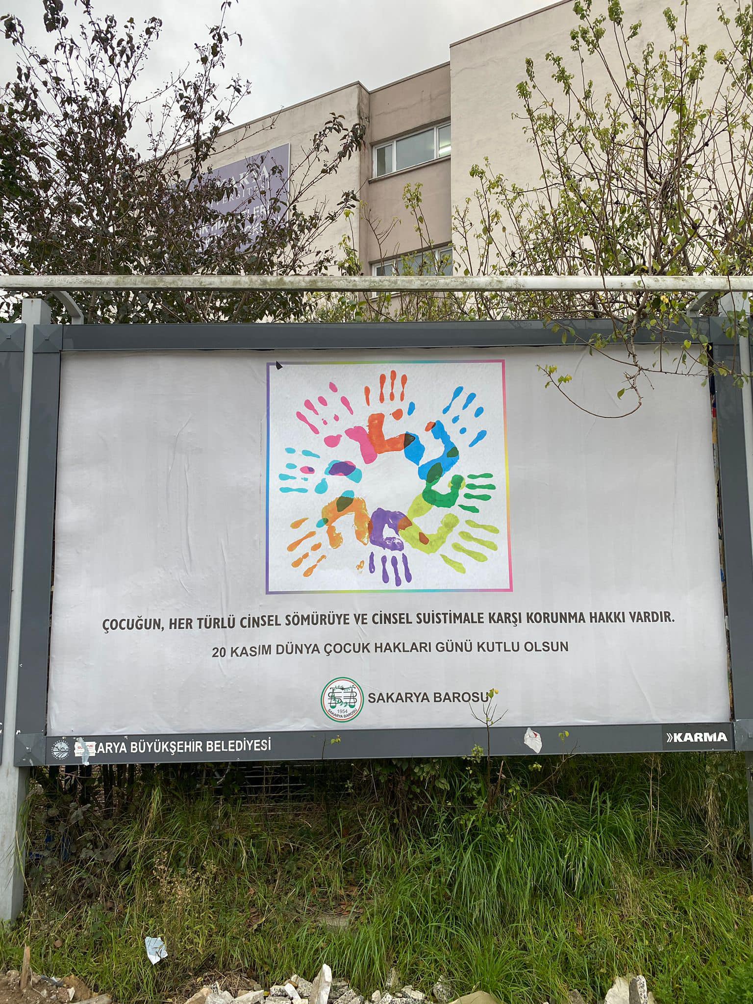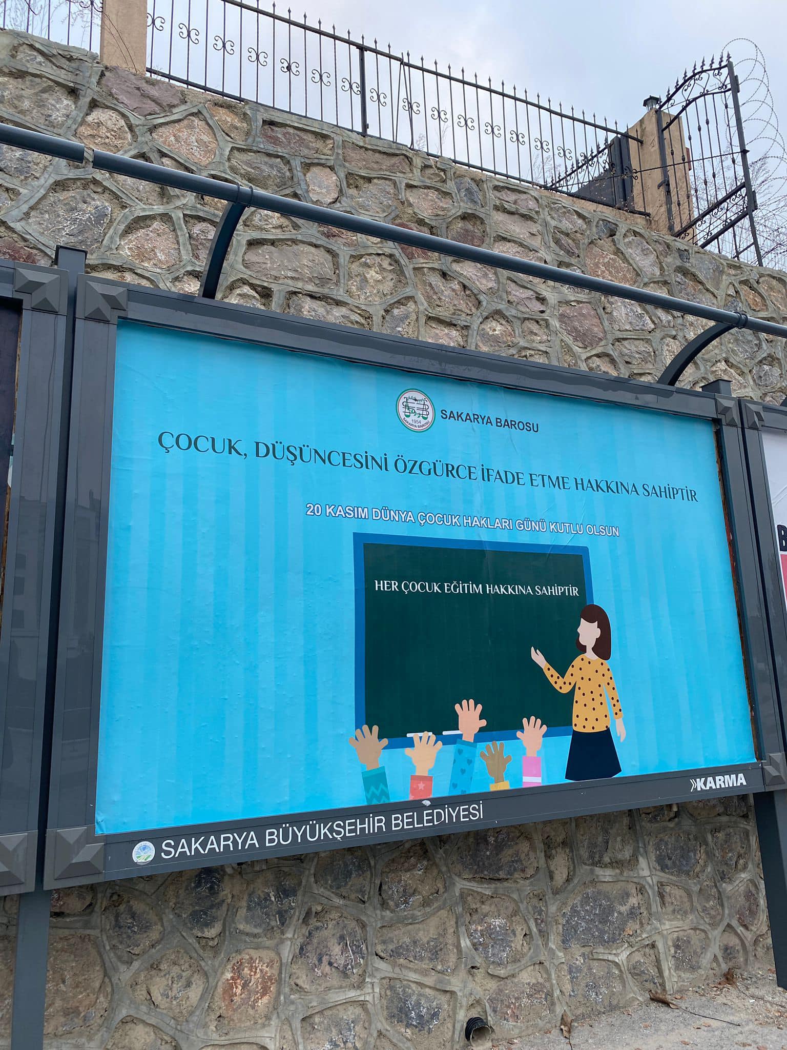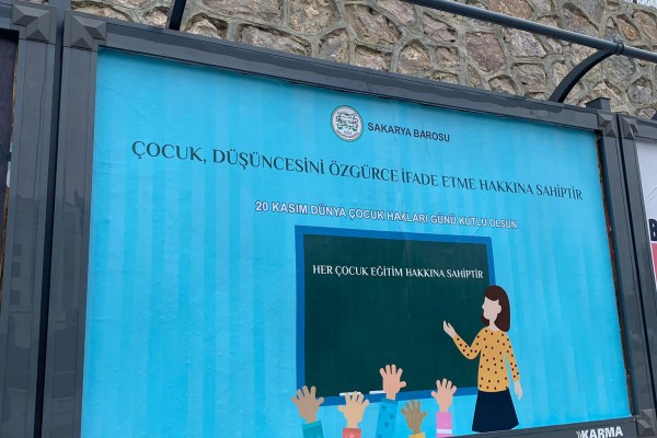 Sakarya Barosu şehirde çocuk hakları bilincinin ve haklar konusundaki farkındalığın artırılması amacıyla şehrin çeşitli bölgelerindeki billboardlara ilan verdi.