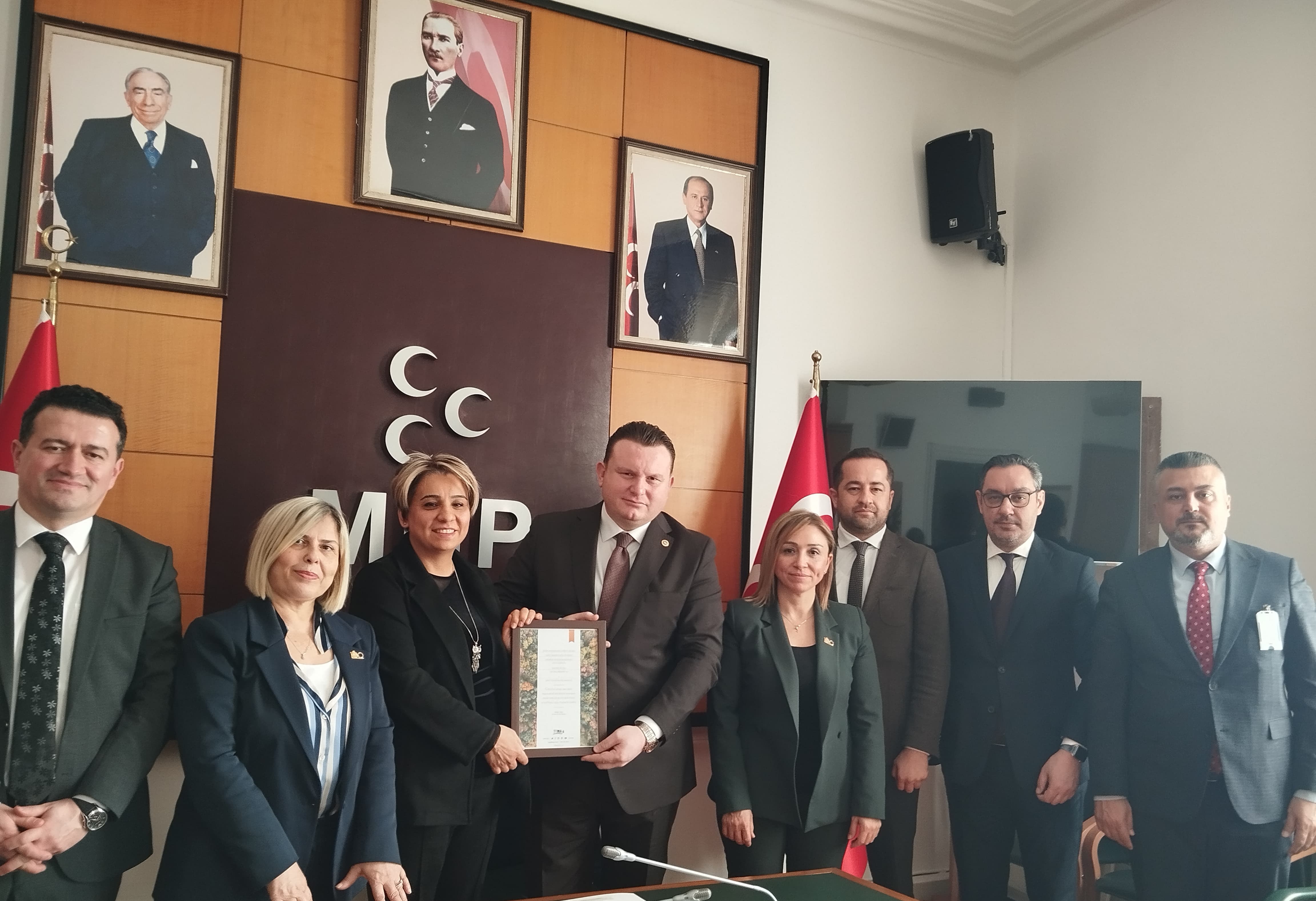 Sakarya Barosu Başkanı Av. İlknur Ebiz Yıldız, Samsun Barosu Başkanı Av. Pınar Gürsel Yıldıran, Artvin Barosu Başkanı Av. Ayla Varan, Düzce Barosu Başkanı Av. Taner Çakır, Giresun Barosu Başkanı Av. Soner Karademir, Niğde Barosu Başkanı Av. Emin Alper Öztürk ve Isparta Barosu Başkanı Av. Ünsal Çankaya’dan oluşan heyet ile hukukçu milletvekillerini TBMM’de ziyaret etti.