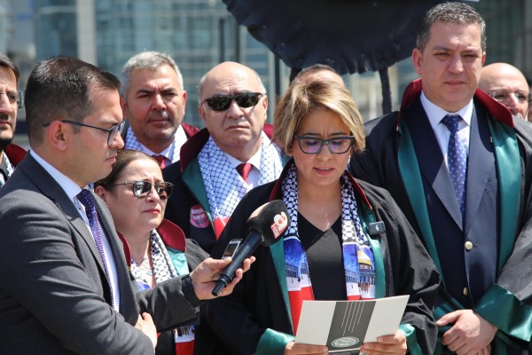 Sağkan, ortak bildirinin okunmasından önce yaptığı konuşmada, baro başkanlarıyla yaklaşık 8 aydır devam eden, İsrail'in artık "soykırıma dönüşmüş" politikasına ve savaş suçlarına karşı bir kez daha tepki göstermek için toplandıklarını söyledi.