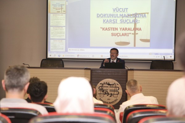 Yargıtay 1. Ceza Dairesi Üyesi Osman Atalay, Sakarya Barosu tarafından düzenlenen CMK eğitimi dahilinde 'Vücut Dokunulmazlığına Karşı Suçlar’, ‘Hayata Karşı Suçlar’ konularında avukalara ve stajyer avukatlara bilgiler verdi.