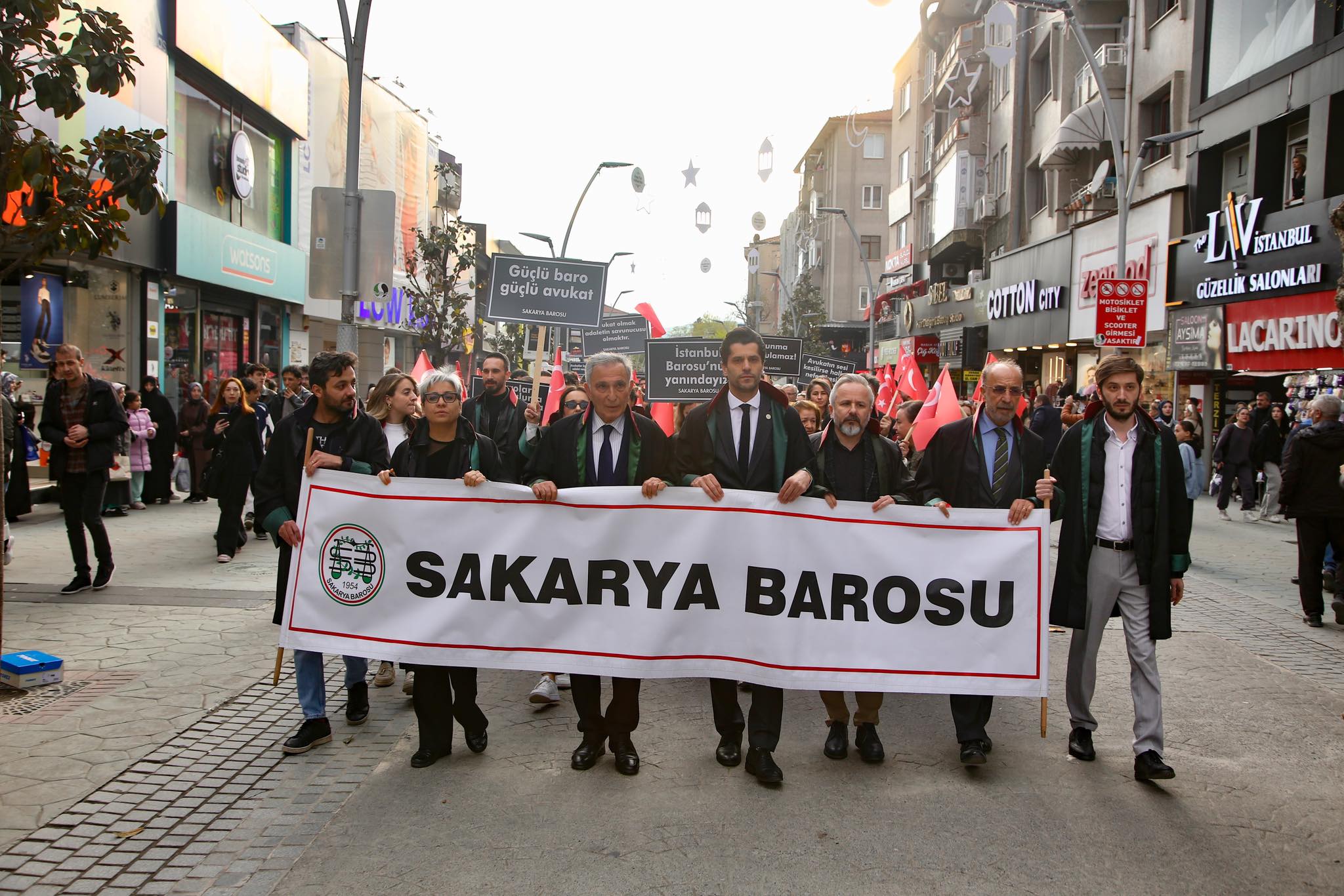 Sakarya Barosu tarafından Adalet Yürüyüşü düzenlendi. Çark Caddesi'nden başlayan yürüyüş, Demokrasi Meydanı'nda Baro Başkanı Av. Musa Adıyaman'ın basın açıklamasıyla son buldu.