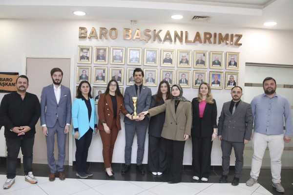 Kurgusal Dava Yarışması'nda kupa kazanan stajyerlerden Baro ziyareti