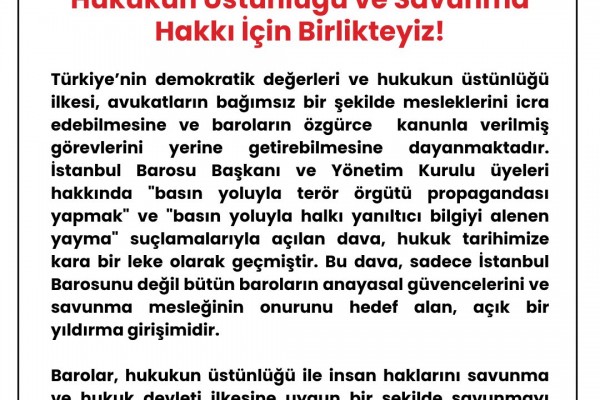 Hukukun Üstünlüğü ve Savunma Hakkı İçin Birlikteyiz! 02.06.2025 149 Görüntüleme 02.06.2025 149 Görüntüleme