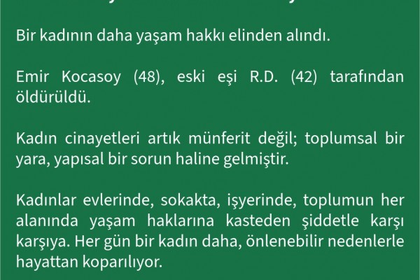Kadın cinayetleri artık münferit değil; toplumsal bir yara, yapısal bir sorun haline gelmiştir.