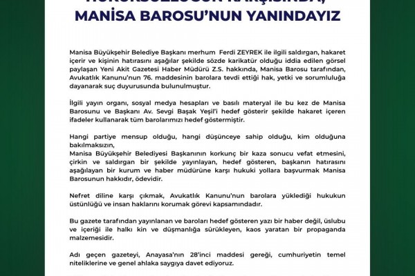 HUKUKSUZLUĞUN KARŞISINDA, MANİSA BAROSU’NUN YANINDAYIZ 16.06.2025 121 Görüntüleme 16.06.2025 121 Görüntüleme