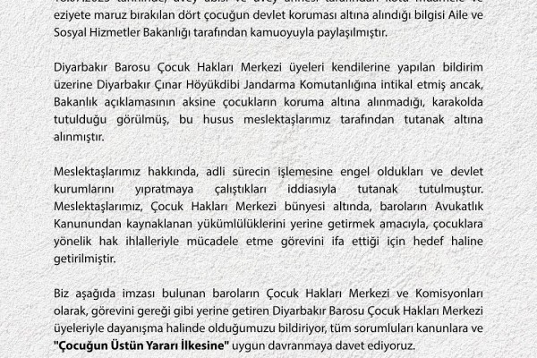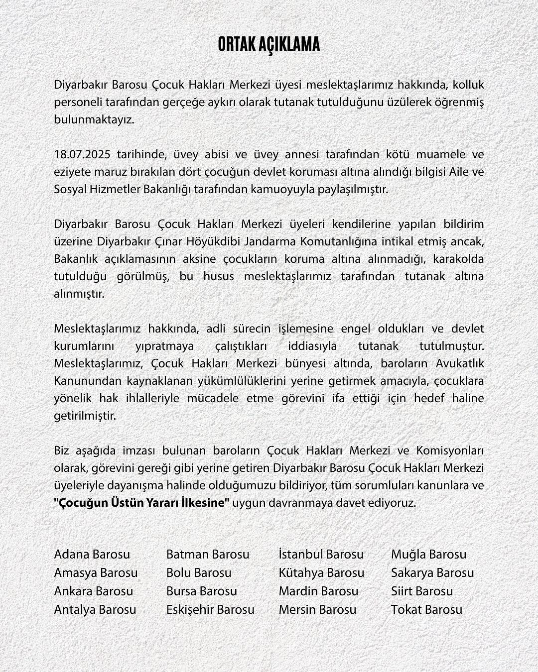 Ortak açıklama: Çocuğun üstün yararı ilkesine uygun davranmaya davet ediyoruz 24.07.2025 103 Görüntüleme 24.07.2025 103 Görüntüleme