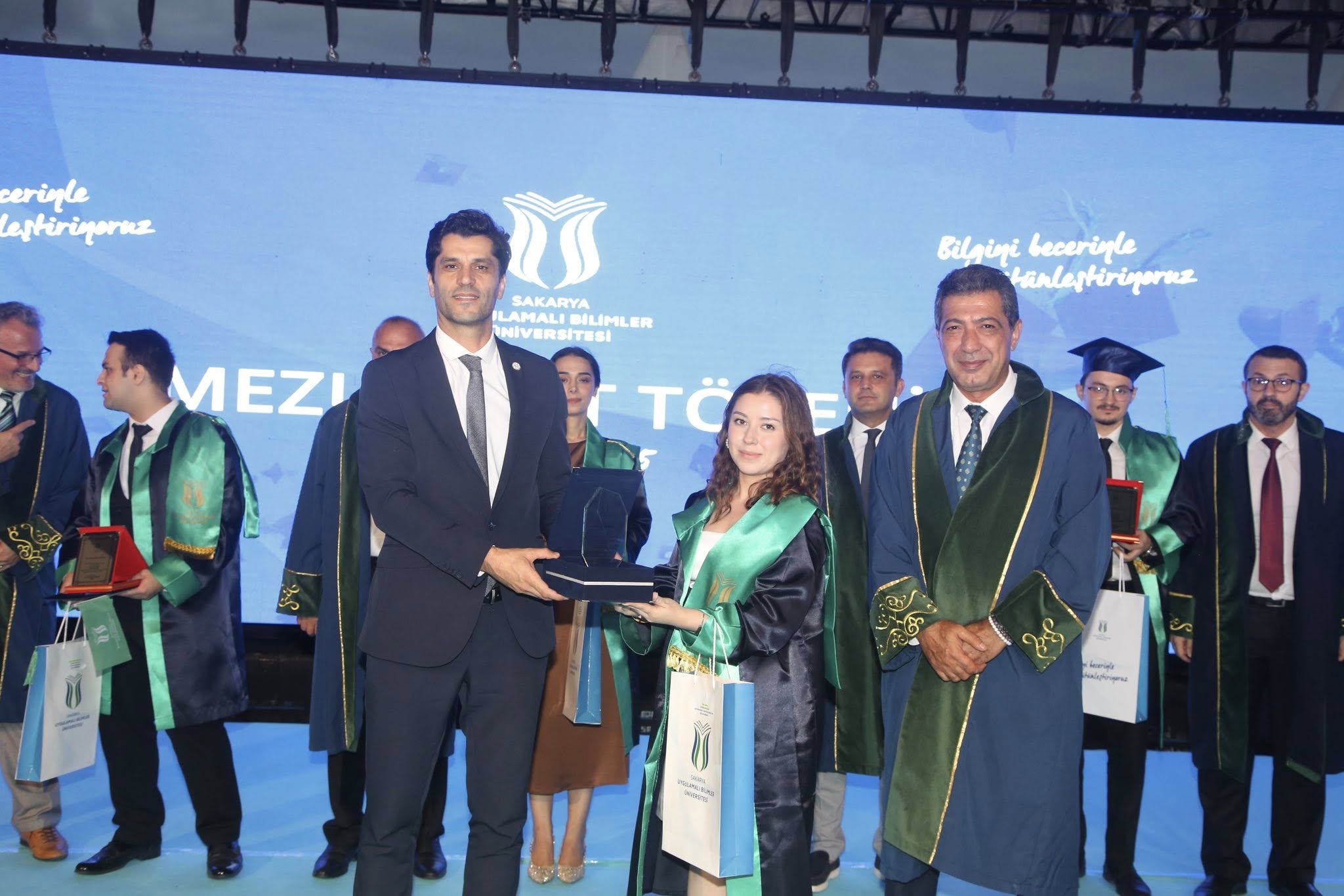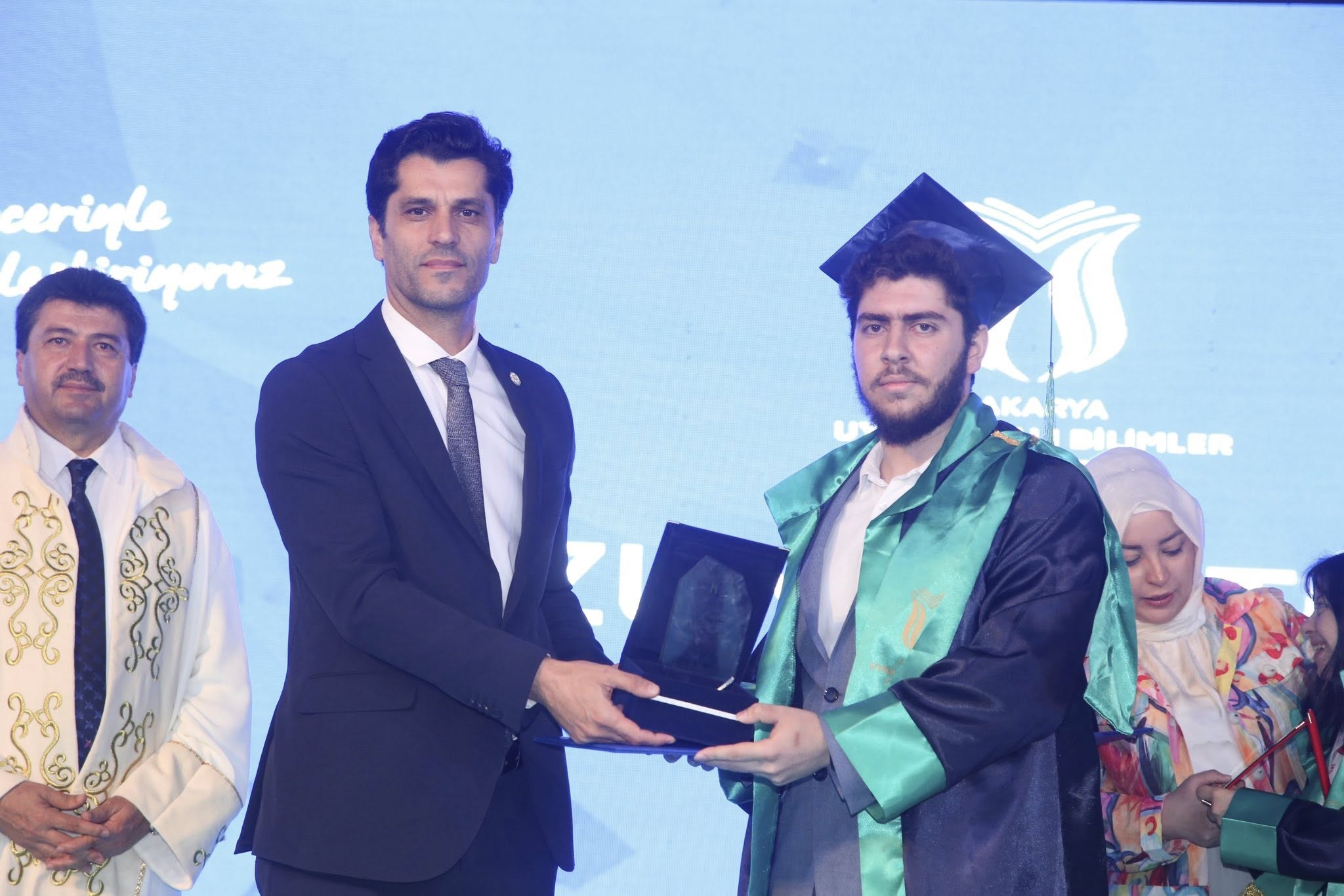 Sakarya Barosu Başkanı Av. Musa Adıyaman, Sakarya Uygulamalı Bilimler Üniversitesi’nin (SUBÜ) 2024- 2025 Eğitim ve Öğretim Yılı Mezuniyet Töreni’ne katılarak öğrencilerin sevincine ortak oldu ve dereceye giren öğrencilere plaket takdim etti.