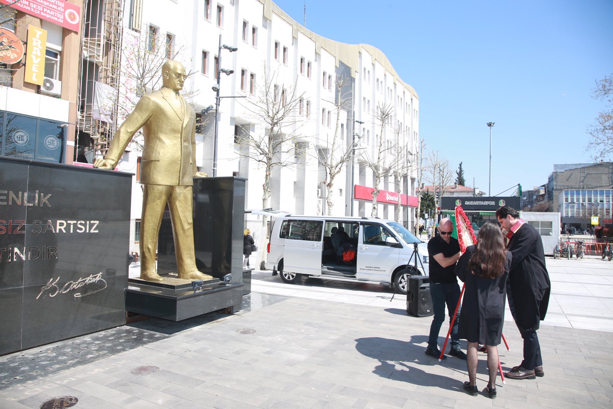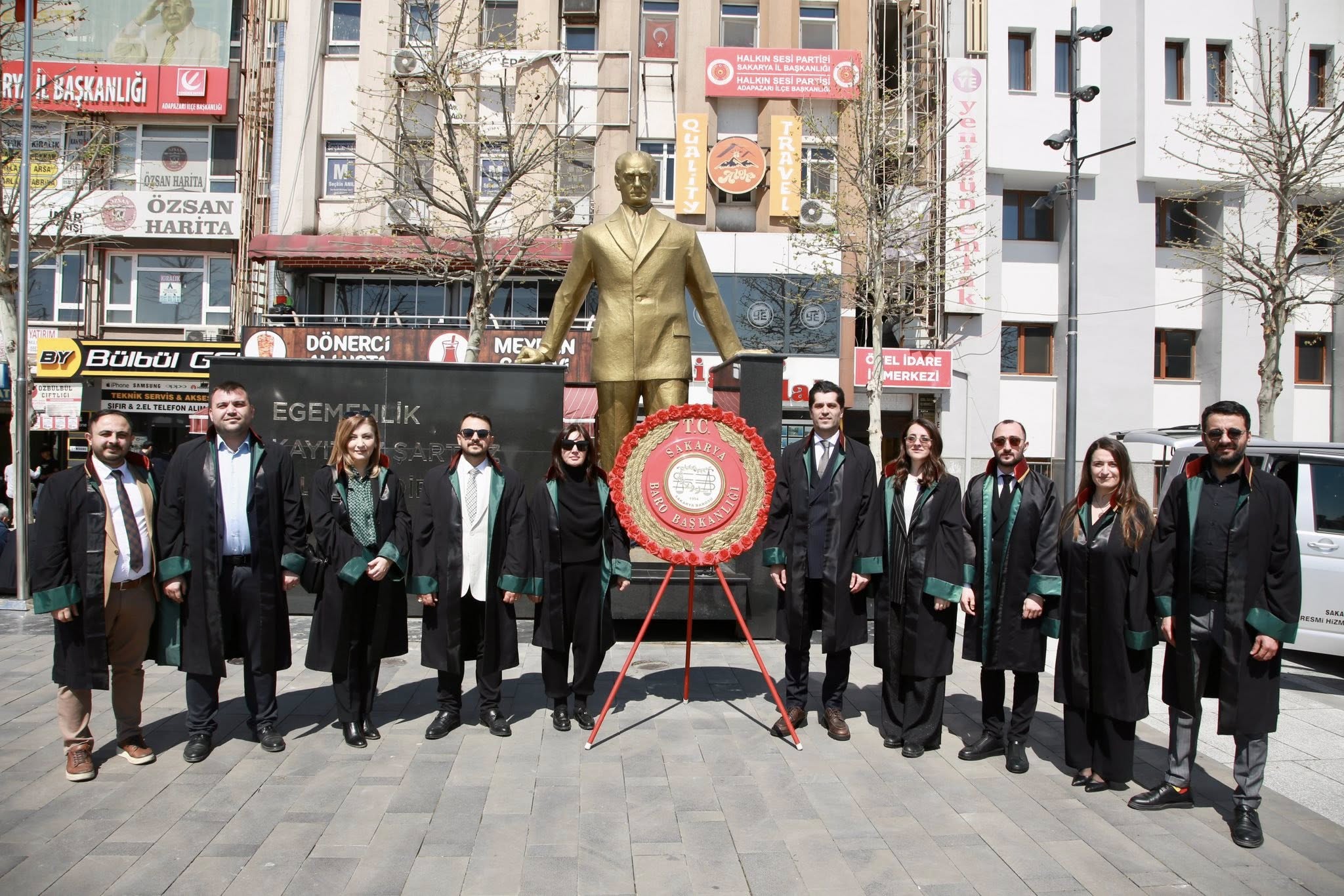 Sakarya Barosu, 5 Nisan Avukatlar Günü nedeniyle Çelenk Sunma Töreni düzenledi. Sakarya Demokrasi Meydanı’nda düzenlenen törende, Baro Başkanı Av. Musa Adıyaman tarafından Atatürk Anıtı’na konulan çelengin ardından saygı duruşunda bulunuldu ve İstiklal Marşı okundu.