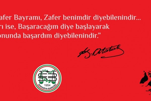Sakarya Barosu Başkanı Av. Zafer Kazan tarafından yayımlanan 30 Ağustos Zafer Bayramı mesajının tamamı şu şekilde: