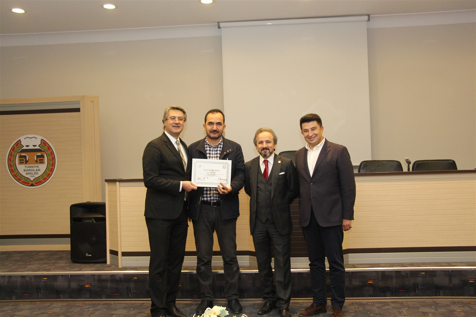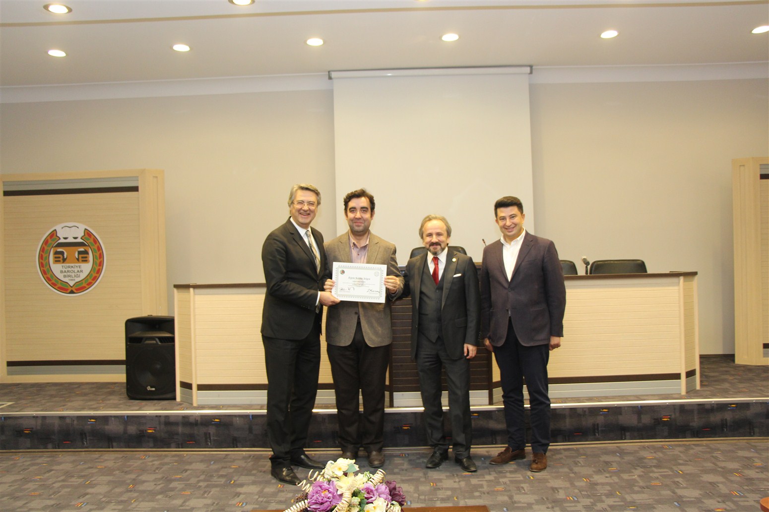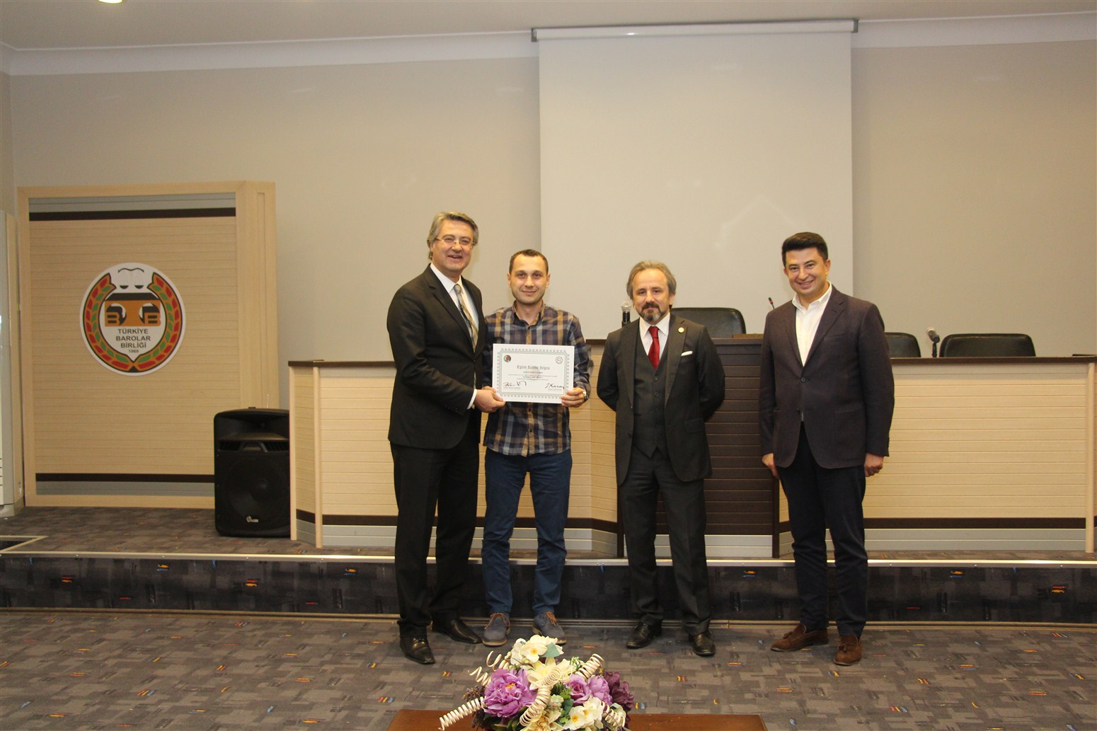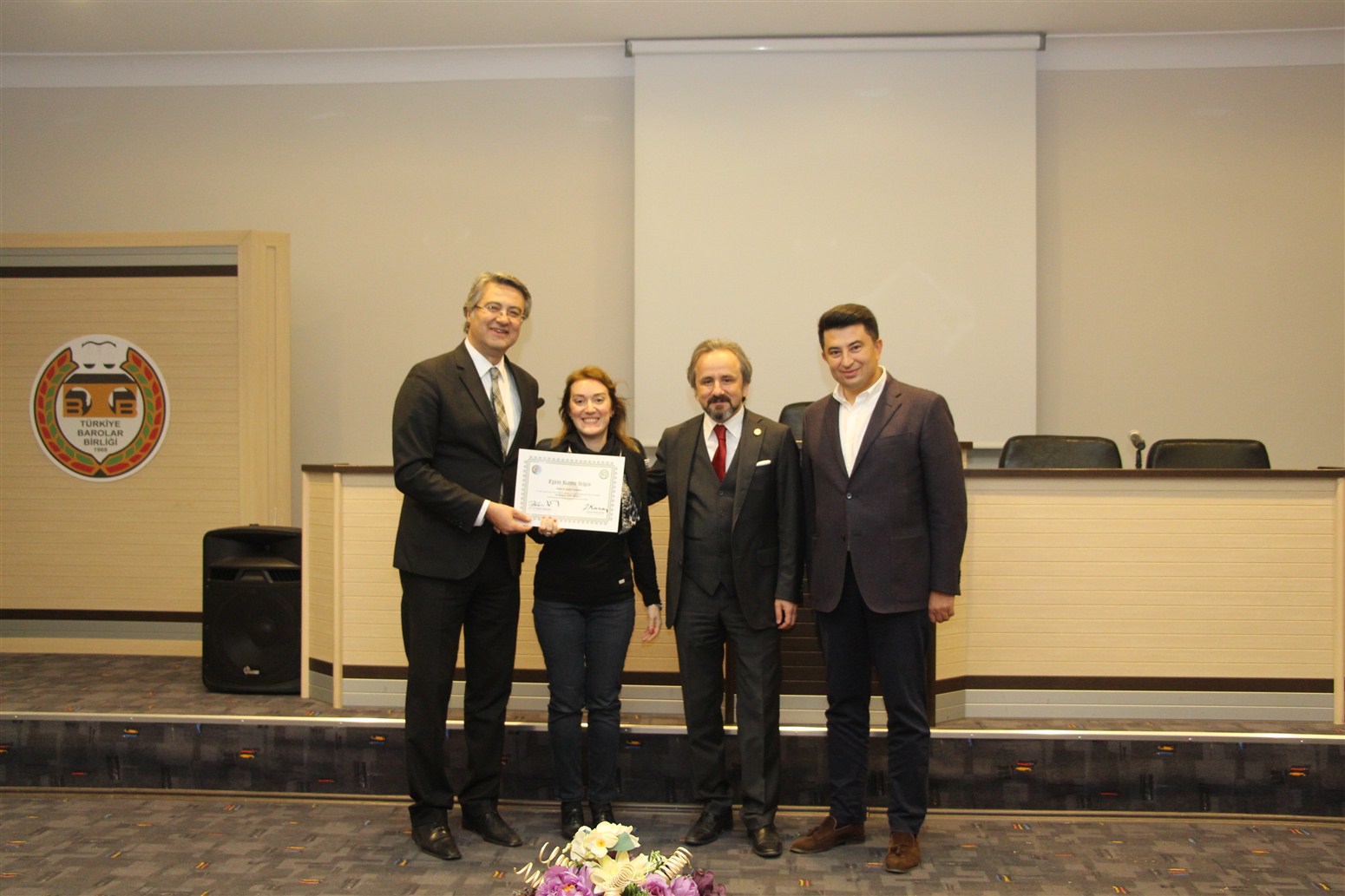 Ankara Üniversitesi Hukuk Fakültesi Ceza ve Ceza Muhakemesi Hukuku Anabilim Dalı Öğretim Üyesi Prof. Dr. Devrim Güngör ve Ankara Barosu Avukatı Av.Alpaslan ÖZARSLAN tarafından verilen eğitim sonunda avukatlar sertifikalarını Baro Başkanı Av. Zafer Kazan ile birlikte Ankara Barosu Başkanı Av. Hakan Canduran’dan aldılar.