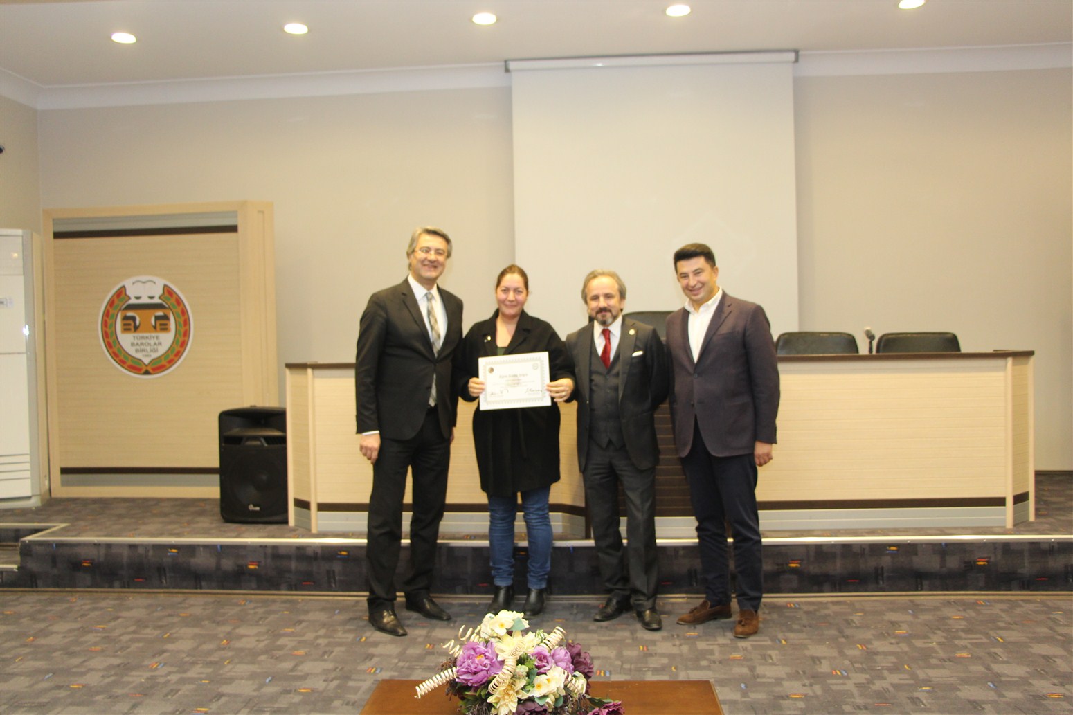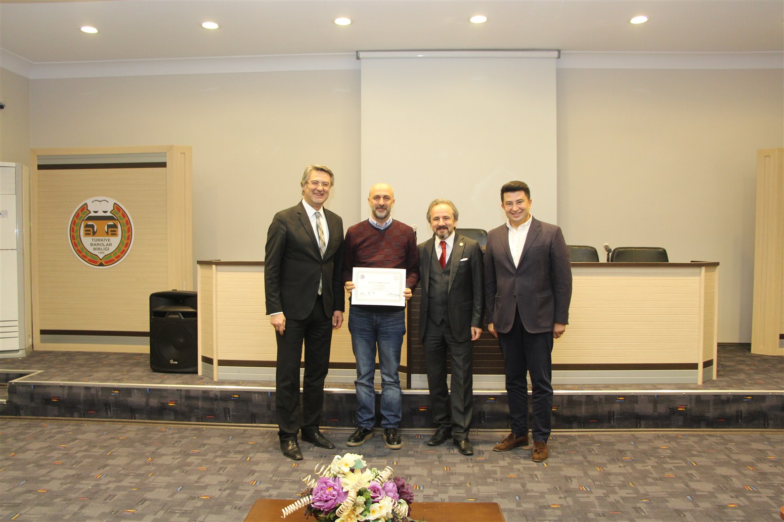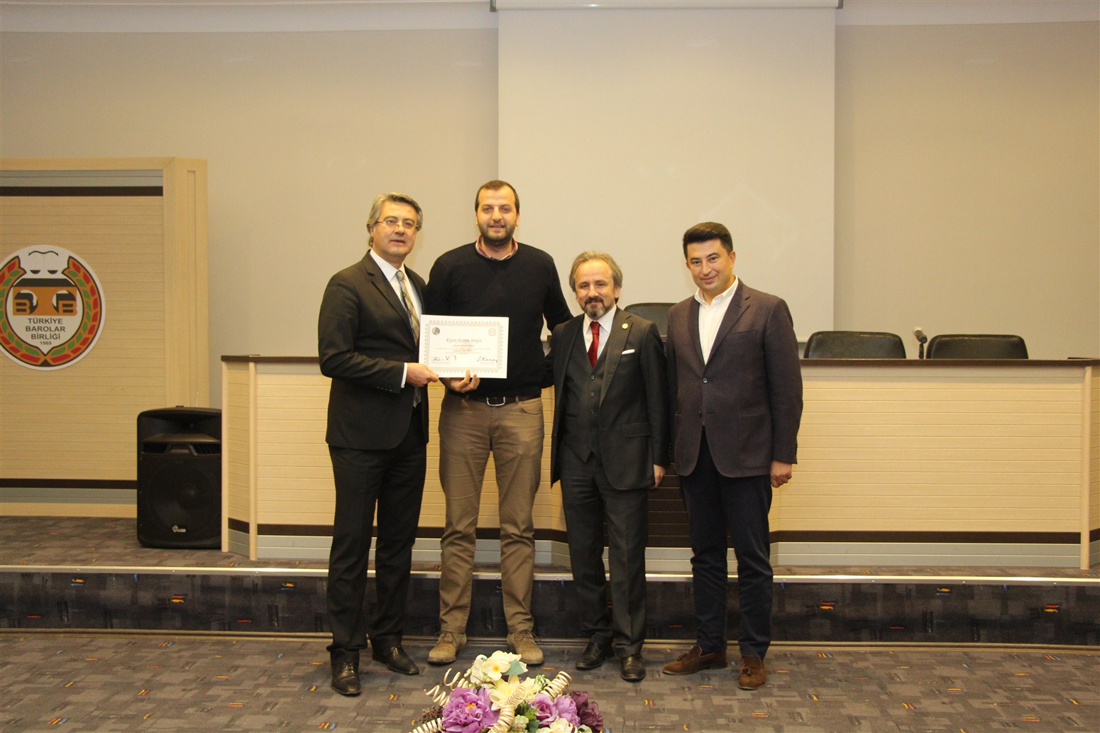 Ankara Üniversitesi Hukuk Fakültesi Ceza ve Ceza Muhakemesi Hukuku Anabilim Dalı Öğretim Üyesi Prof. Dr. Devrim Güngör ve Ankara Barosu Avukatı Av.Alpaslan ÖZARSLAN tarafından verilen eğitim sonunda avukatlar sertifikalarını Baro Başkanı Av. Zafer Kazan ile birlikte Ankara Barosu Başkanı Av. Hakan Canduran’dan aldılar.