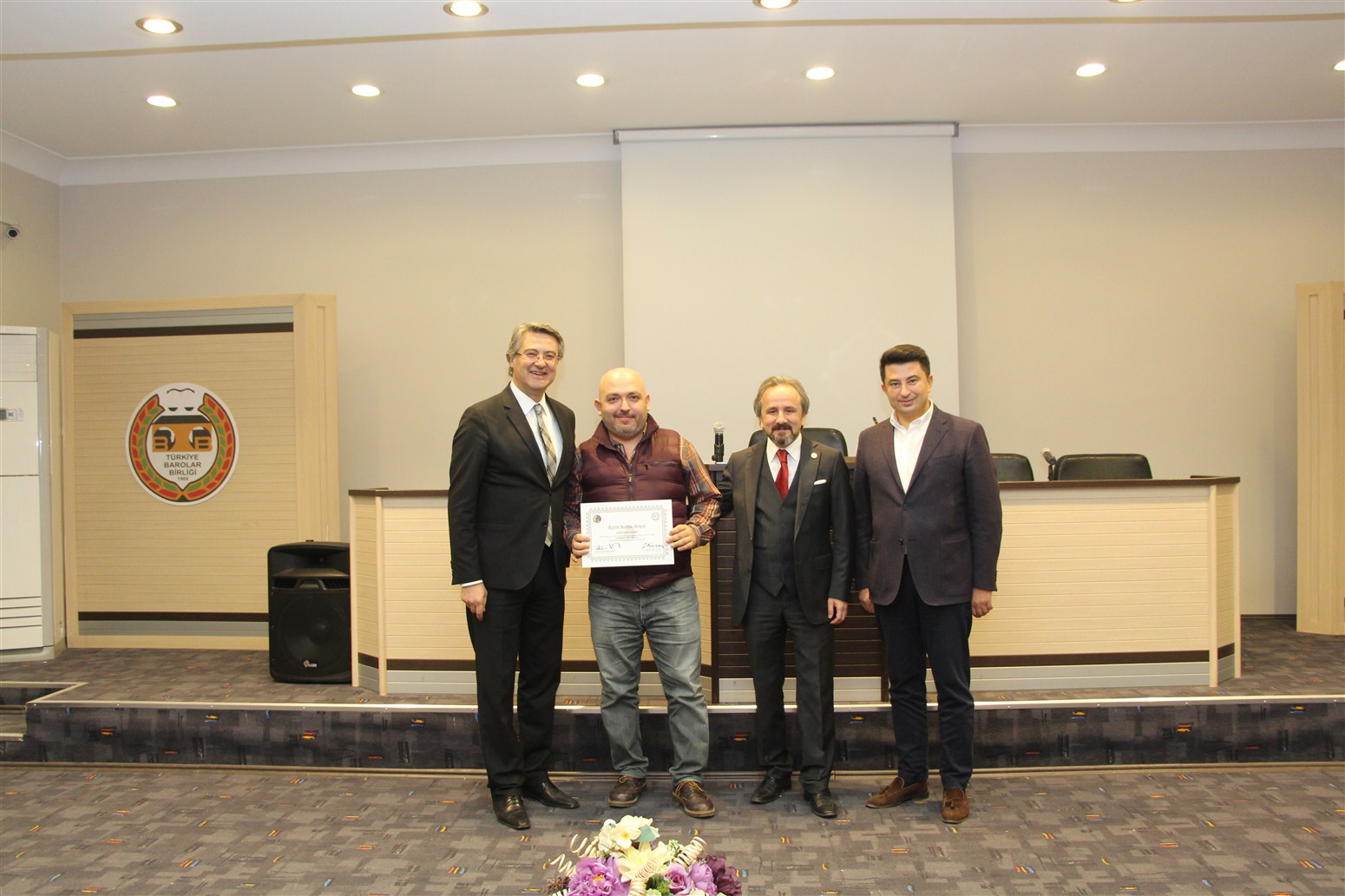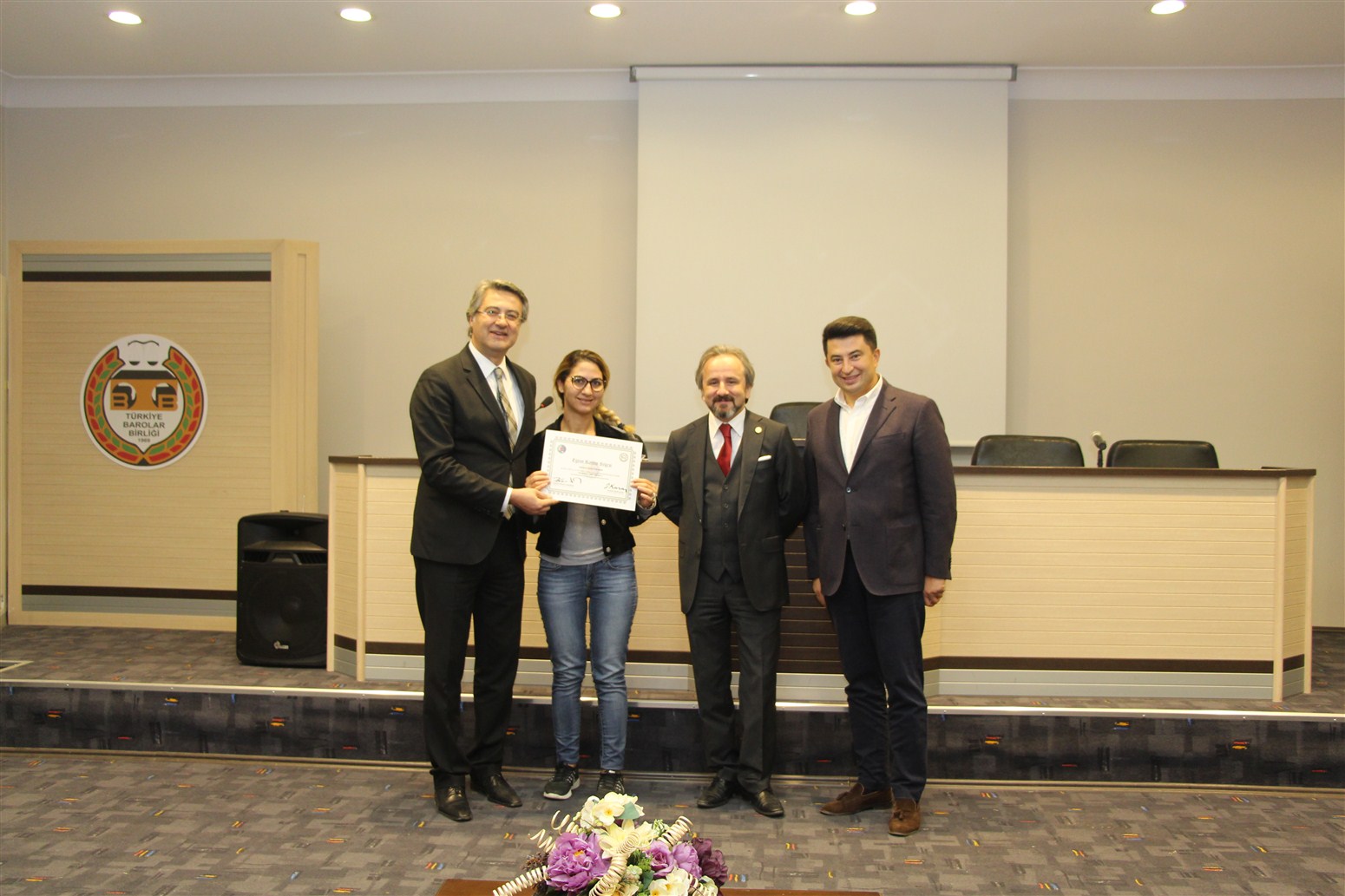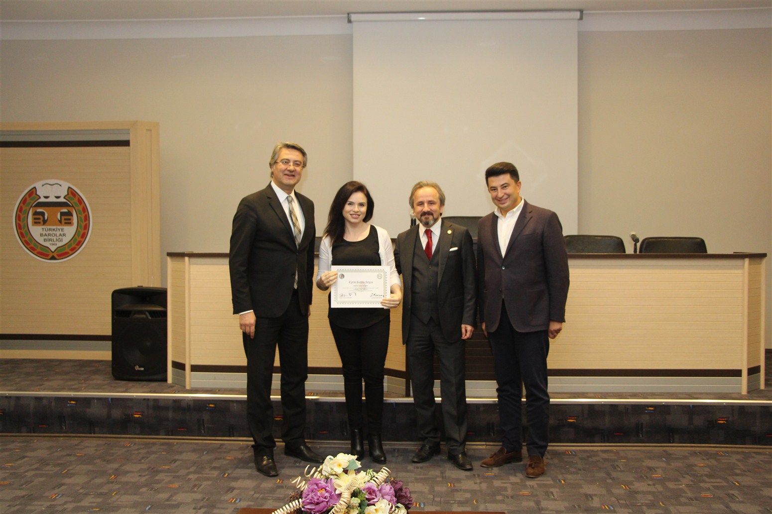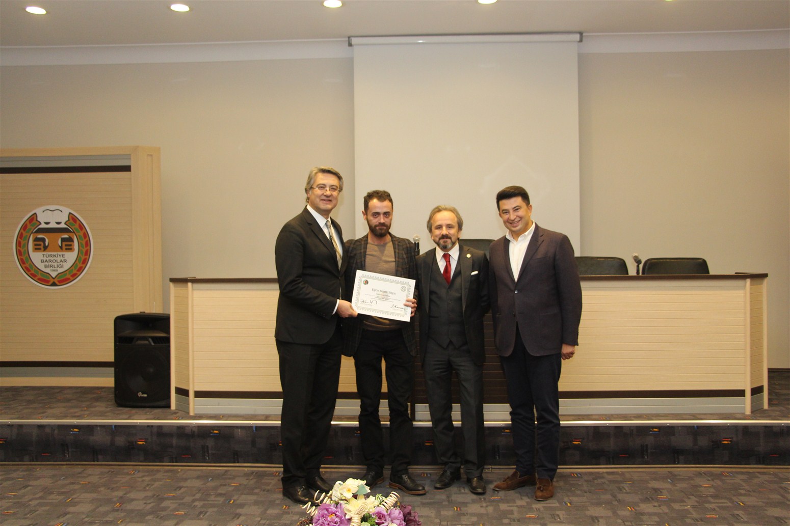 Ankara Üniversitesi Hukuk Fakültesi Ceza ve Ceza Muhakemesi Hukuku Anabilim Dalı Öğretim Üyesi Prof. Dr. Devrim Güngör ve Ankara Barosu Avukatı Av.Alpaslan ÖZARSLAN tarafından verilen eğitim sonunda avukatlar sertifikalarını Baro Başkanı Av. Zafer Kazan ile birlikte Ankara Barosu Başkanı Av. Hakan Canduran’dan aldılar.
