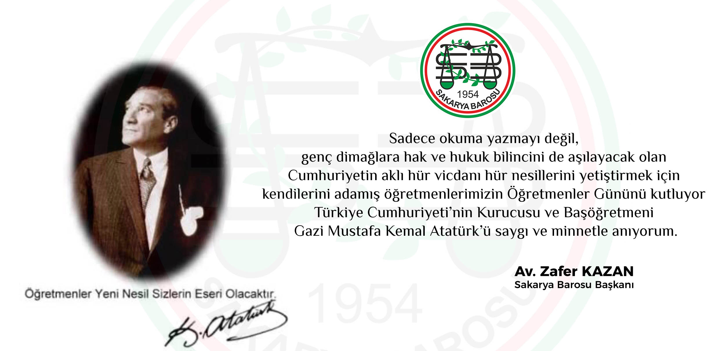 BAR0 BAŞKANIMIZ AV. ZAFER KAZAN'IN 24 KASIM ÖĞRETMENLER GÜNÜ MESAJI