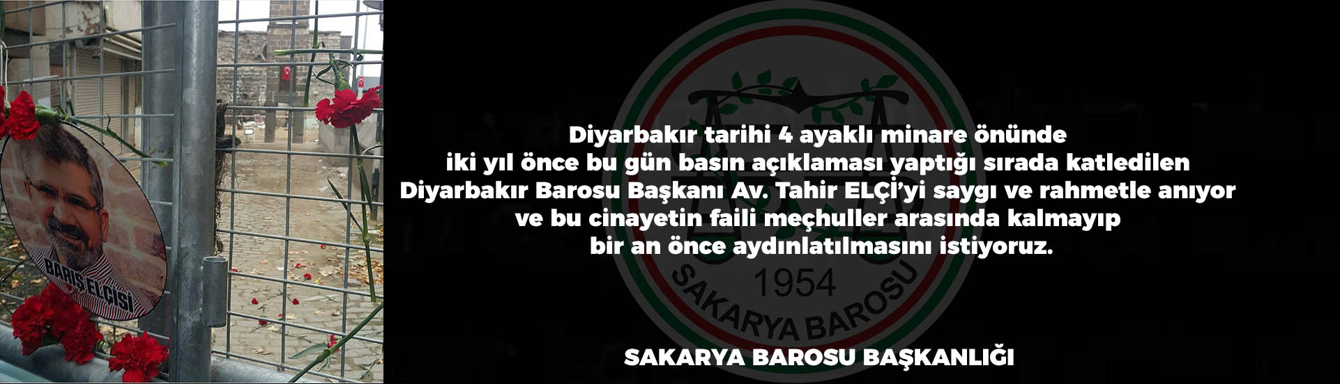 Diyarbakır tarihi 4 ayaklı minare önünde iki yıl önce bu gün basın açıklaması yaptığı sırada katledilen Diyarbakır Barosu Başkanı Av. Tahir ELÇİ’yi saygı ve rahmetle anıyor ve bu cinayetin faili meçhuller arasında kalmayıp bir an önce aydınlatılmasını istiyoruz.