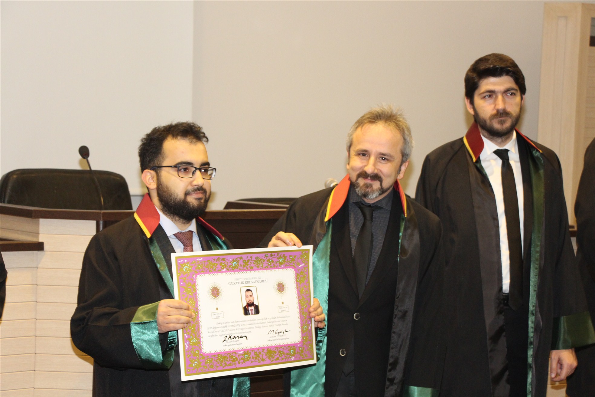 Sakarya Barosu Stajyer Avukatlarından Emre Aydoğmuş, Gonca Altun, Mustafa Yavuz Yürükçü ve Melih Atasoy ruhsatnamelerini alarak Avukatlık mesleğine başladılar.