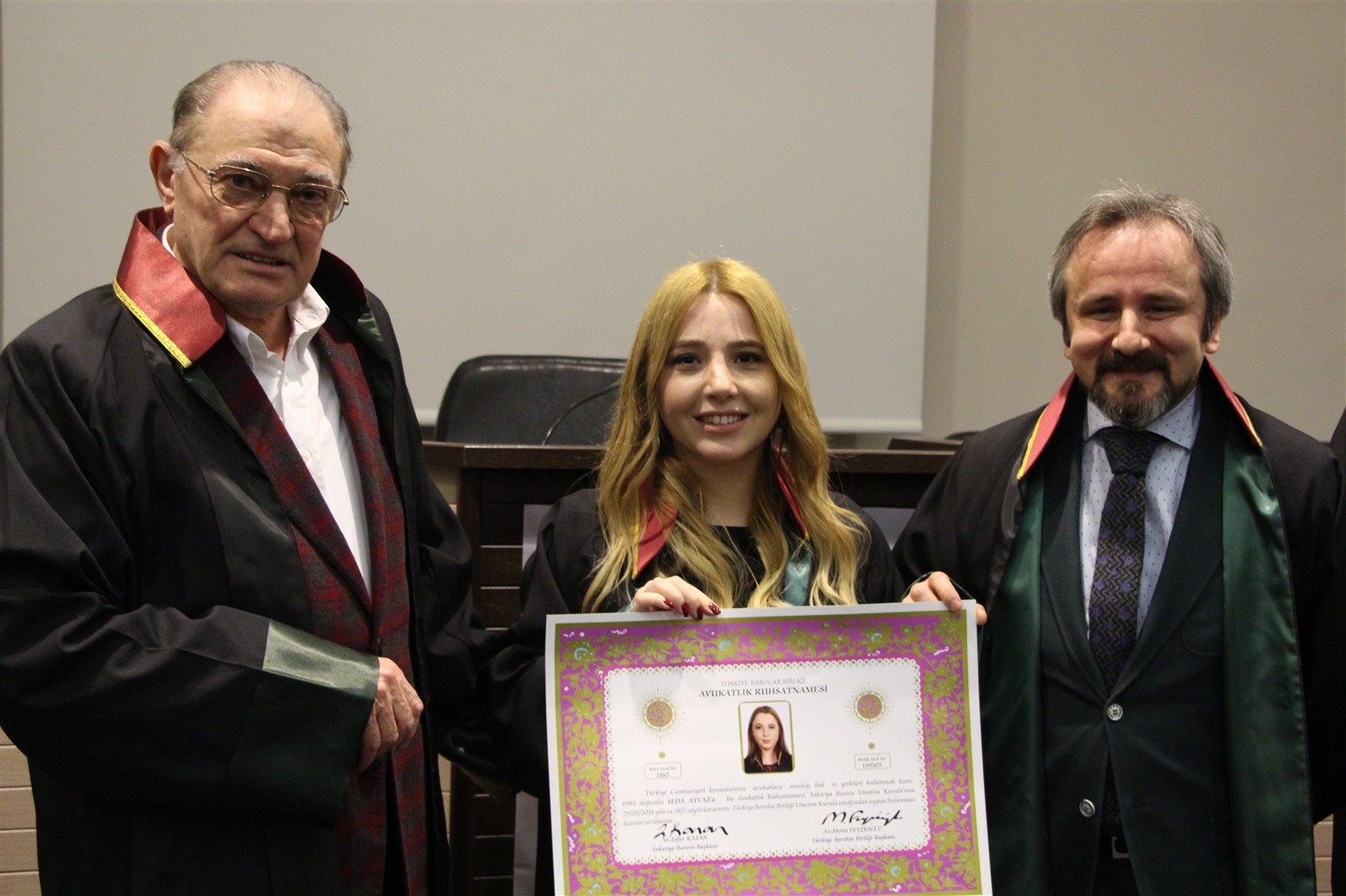 Sakarya Barosu, Stajyer Avukatlar Seda Ayvaz ve Sibel Sakarya’nın ruhsat töreninde bir araya geldi. Baro Konferans Salonunda gerçekleştirilen törende konuşan Baro Başkanı Av. Zafer Kazan, Avukatların ve Baroların parçalanmaya çalışılmasına dikkat çekerek, yargıyı bağımsız olmaya zorlayan yegâne kurucu unsurun avukatlar olduğunu ifade etti. Başkan Kazan, Hukuk ve demokrasinin belki de son sığınağı olan Baroların ve Avukatların demokrasi ve hukukun geleceği için kenetlenmiş olduğuna dikkat çekerek “ellerinizi ülkenin birliğini huzurunu ve demokrasisini temsil eden, hukuk ve adalet savunucusu olan Avukatların üzerinden çekin zira Avukatlar hiçbir zaman köle kullanmamıştır ancak hiçbir efendi de kabul etmemiştir” dedi.