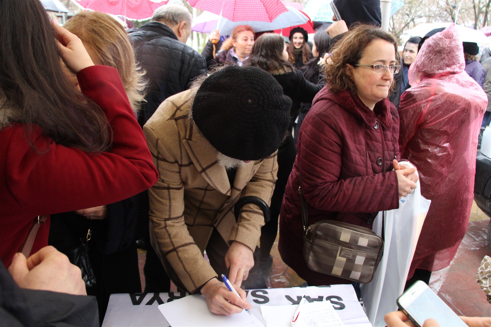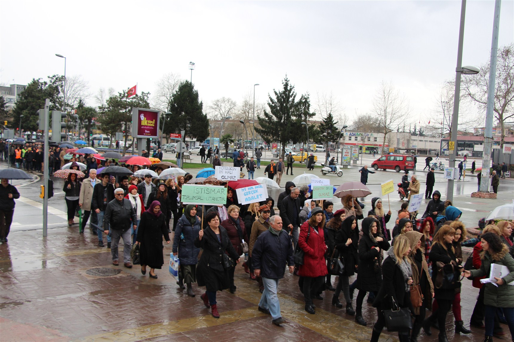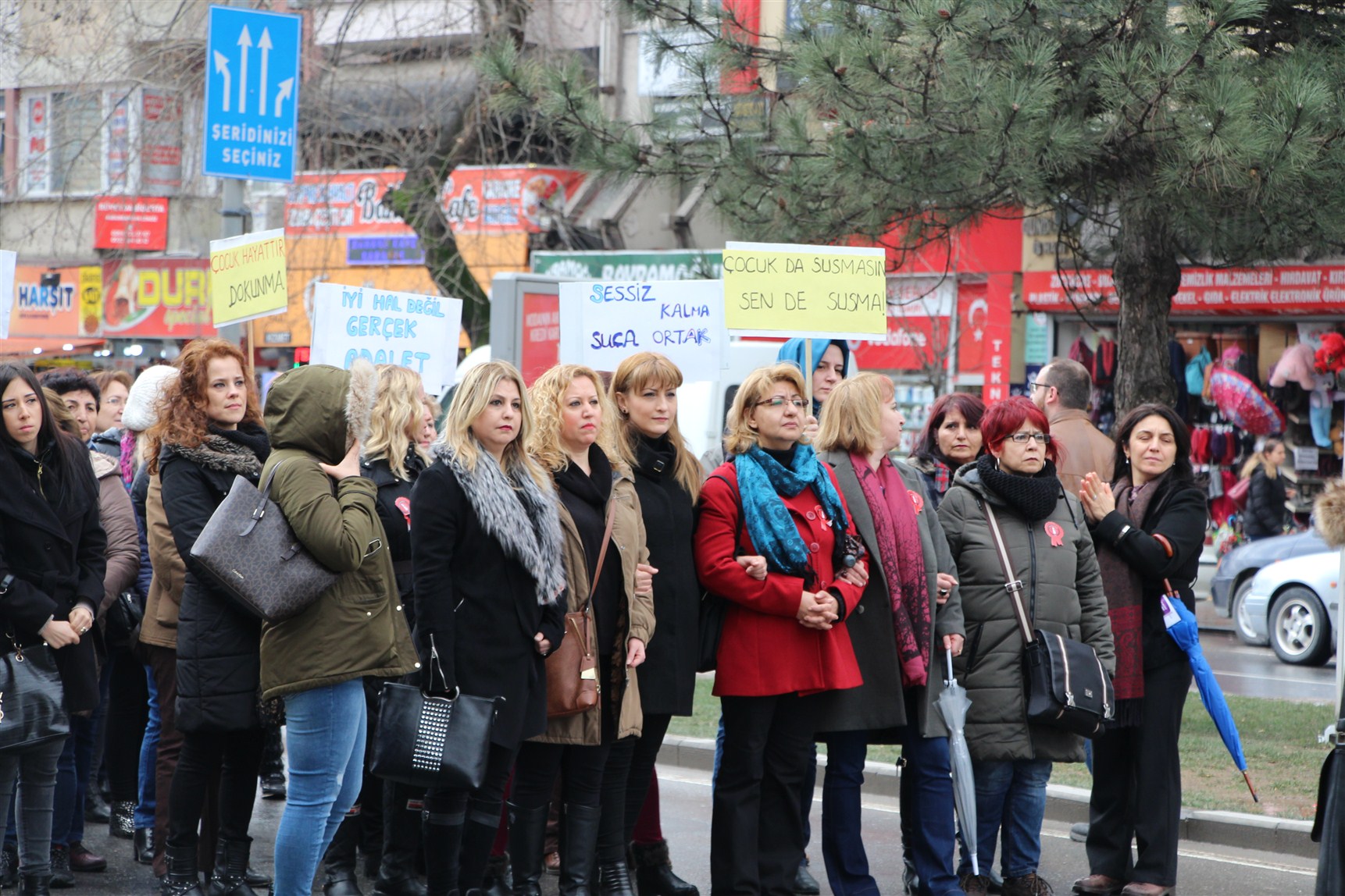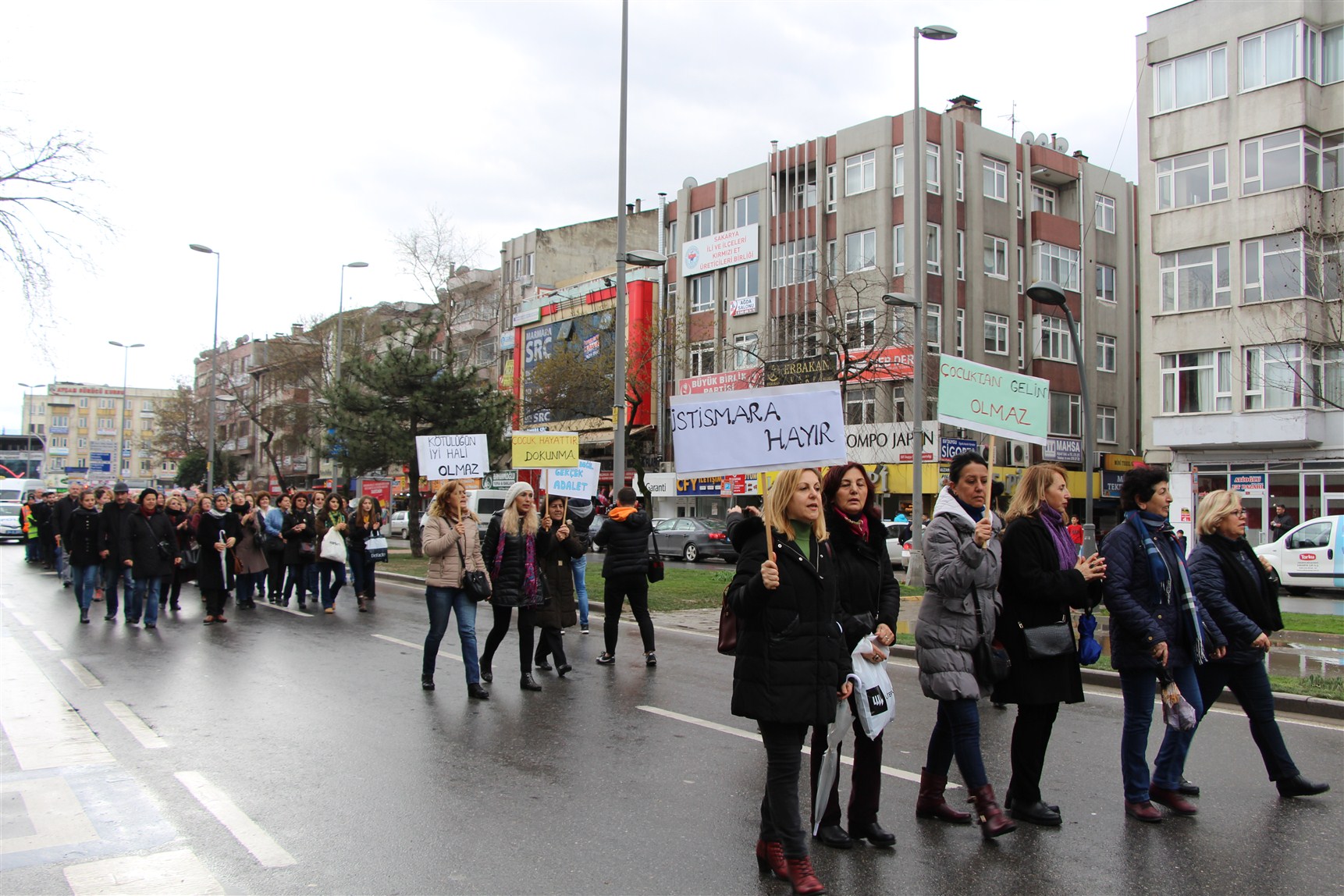 Yağmura aldırış etmeden ellerinde dövizler ile ‘Çocuk da susmasın sen de susma’, ‘İyi hal değil gerçek adalet’, ‘çocuk hayattır dokunma’, ‘ Sessiz kalma suça ortak olma’, ’İstismara hayır’ sloganları atarak AKM ’önüne gelen kortej, Sakarya Barosu Çocuk Hakları Merkezi tarafından taslağı oluşturulan ve STK’ların önerileri ile son hali verilen bildiriyi imza kampanyasına açtılar.