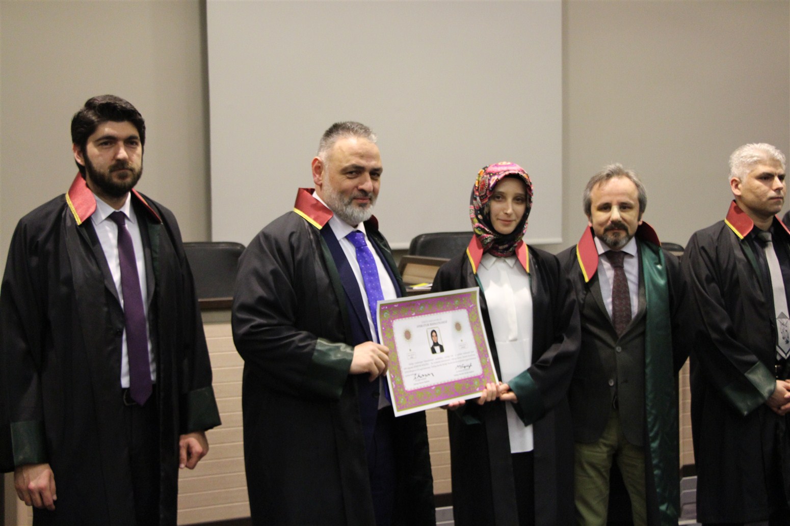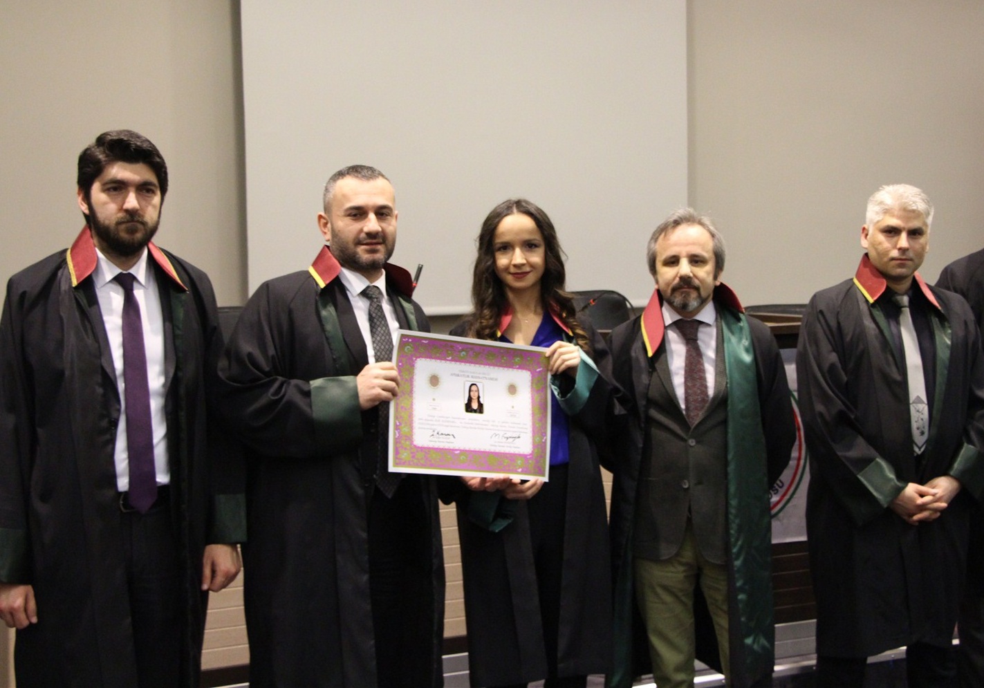 Genç meslektaşlarını ve ailelerini tebrik eden Başkan Kazan Av. Yusuf Topaloğlu ve Av. Recep Hacıeyüpoğlu ile birlikte avukatlara ruhsatnamelerini takdim etti.