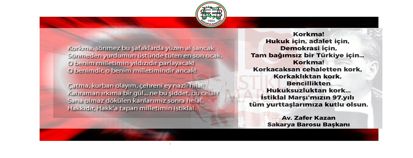 BARO BAŞKANIMIZ AV. ZAFER KAZAN'DAN İSTİKLAL MARŞIMIZIN 97. YILI MESAJI