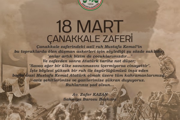 BARO BAŞKANIMIZ AV. ZAFER KAZAN'IN 18 MART MESAJI