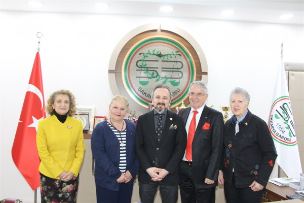 Sakarya Çağdaş Yaşamı Destekleme Derneği Başkanı Şefika Büyükakten, beraberinde yönetim kurulu üyeleri Gülen Akın Serdaroğlu, Esen Kutluata ve Çark Rotary Kulübü Başkanı Av. Fahri Şen, Baro Başkanı Av. Zafer Kazan’ı makamında ziyaret etti.