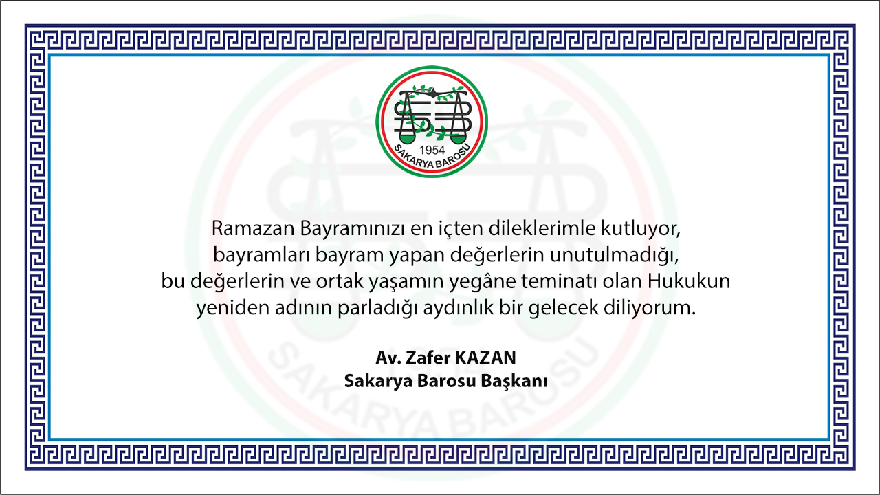 BARO BAŞKANIMIZ AV. ZAFER KAZAN'IN RAMAZAN BAYRAMI MESAJI