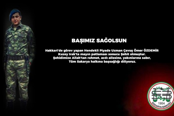 Hakkari’de görev yapan Hendekli Piyade Uzman Çavuş Ömer ÖZDEMİR Kuzey Irak’ta mayın patlaması sonucu Şehit olmuştur. Şehidimize Allah’tan rahmet, acılı ailesine, yakınlarına sabır, Tüm Sakarya halkına başsağlığı diliyoruz.