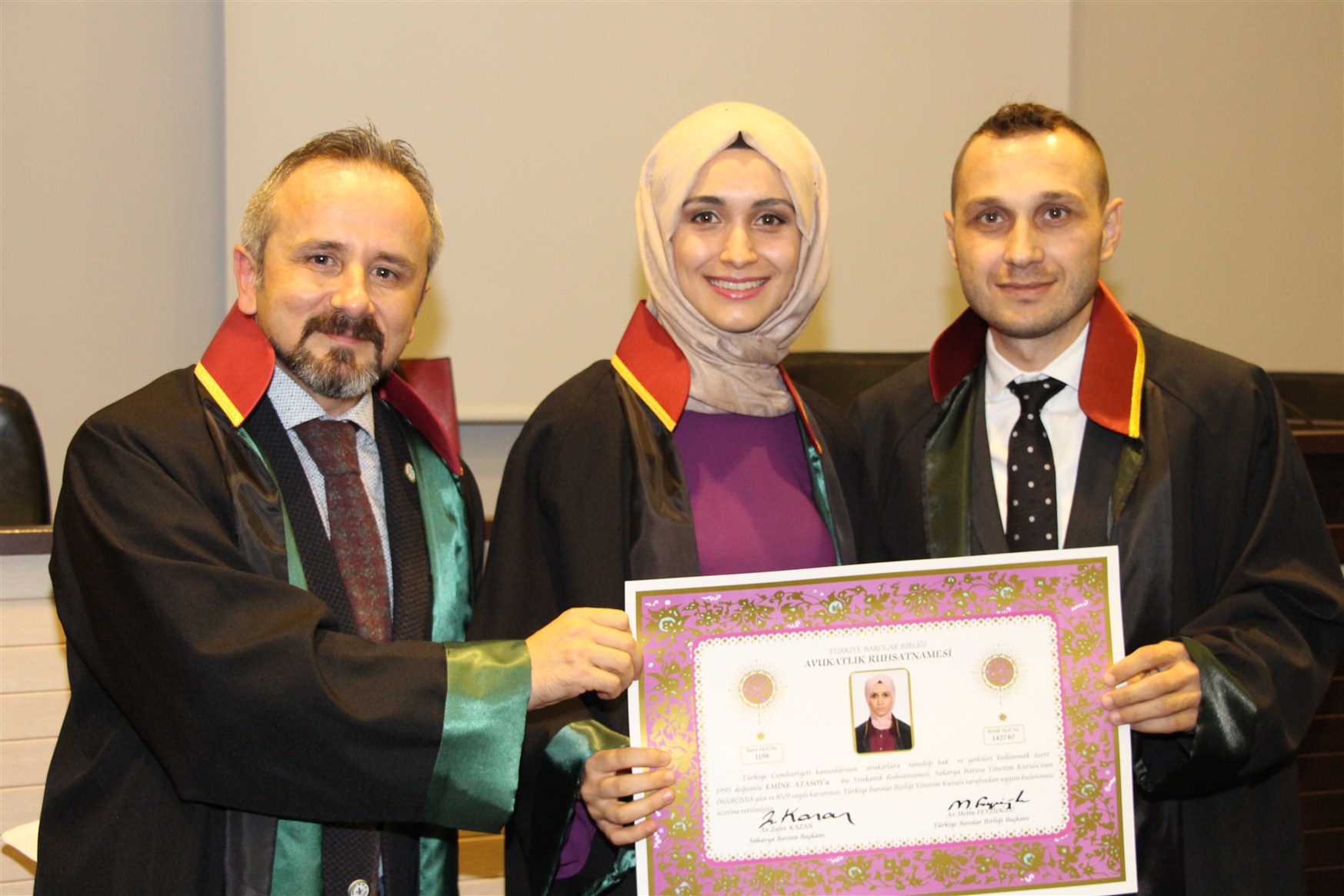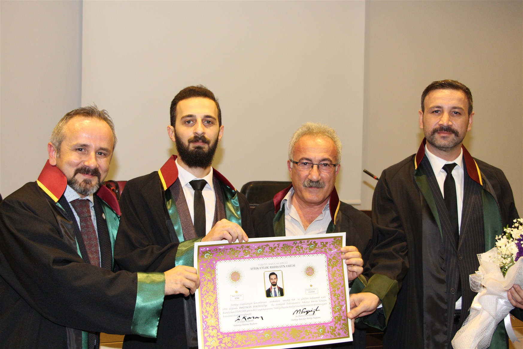 Sakarya Barosu’nda mesleğe başlayan genç avukatlar aileleri ve yakınları ile birlikte törene katıldılar.
