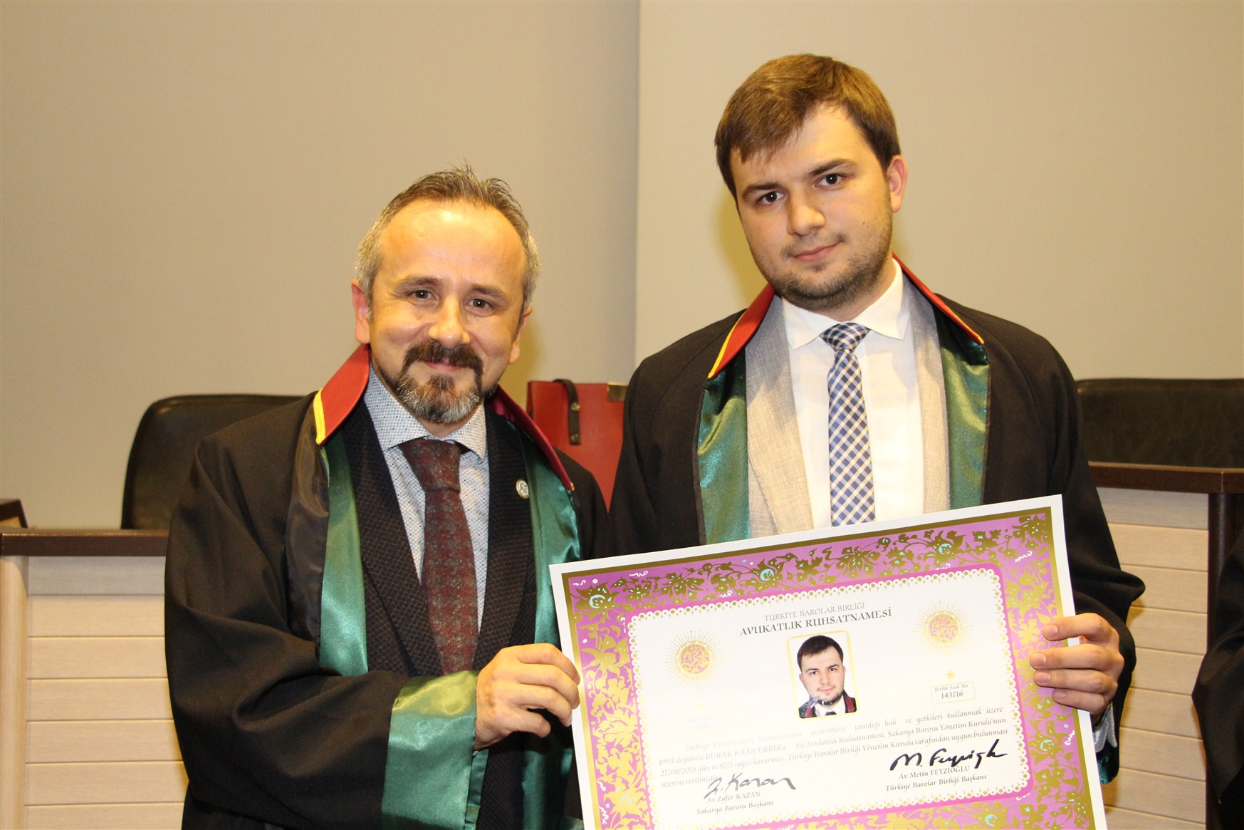 Sakarya Barosu Konferans Salonunda düzenlenen törende yemin eden Stajyer Avukatlar Barış Çiftçi, Samet Bekmezcioğlu, Sena Hızel, Melike Ecem Kocacık, Doğukan Fertelli, Burak Kaan Erbir, Emine Atasoy ve Cengiz Üstün ruhsatnamelerini alarak Avukatlık mesleğine başladılar.