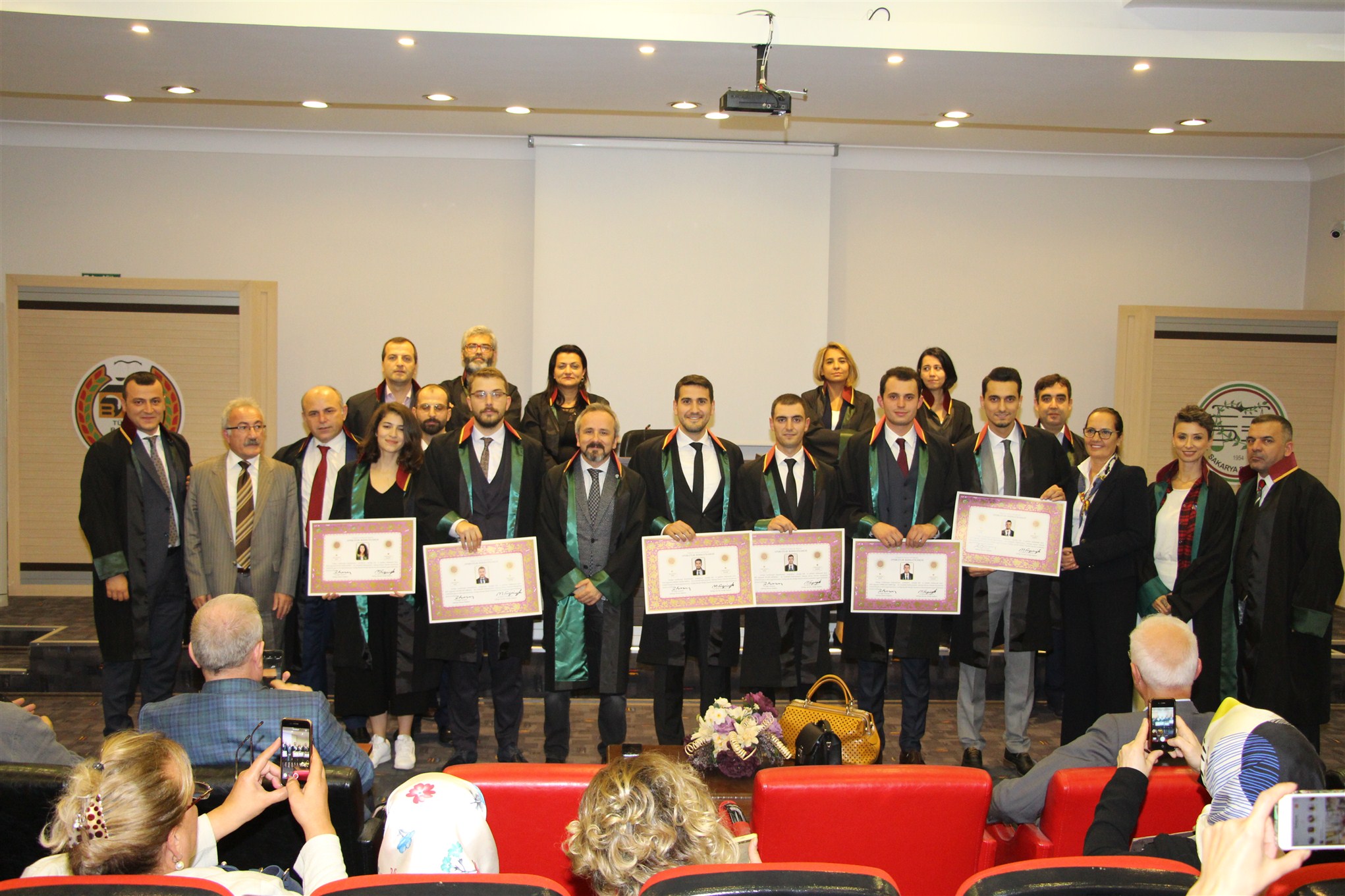 Stajyer Avukatlar Feyza Nur Çelik, Ahmet Ilgın Anıl, Ahmet Selim Beyenal, Fatih Zengin, Emircan Cebeci ve Uğurcan Saraç’ın ruhsatname töreni için Baro Konferans Salonunda bir araya gelen Baro Başkanı Av. Zafer Kazan, Yönetim Kurulu Üyeleri, avukatlar ve yakınları Baroda 52. Dönemin son törenini gerçekleştirdiler.