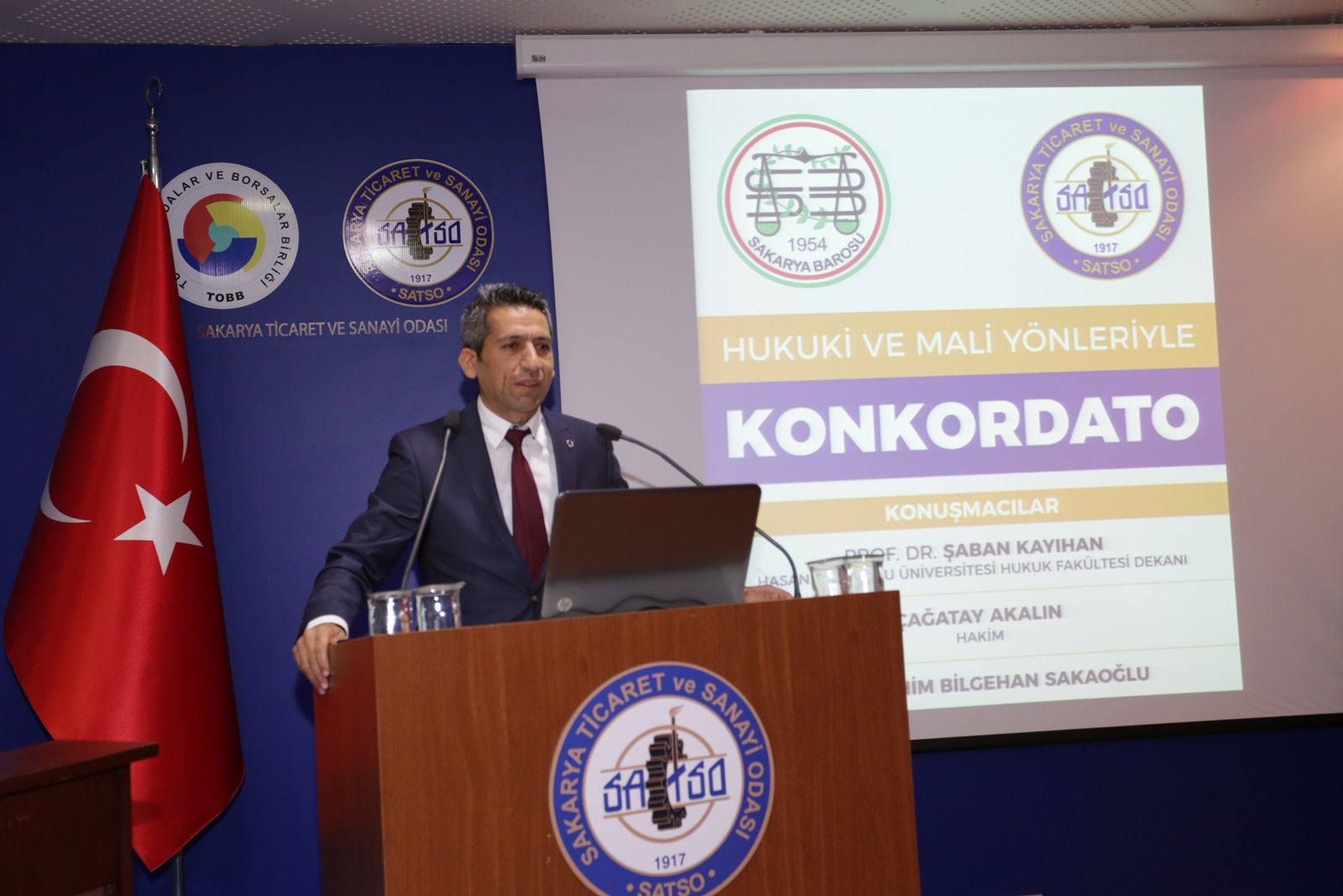 Sakarya Barosu ve SATSO’nun ortaklaşa düzenlediği “HUKUKİ ve MALİ YÖNLERİYLE KONKORDATO” konulu seminer SATSO Ali Coşkun Konferans Salonunda gerçekleştirildi.