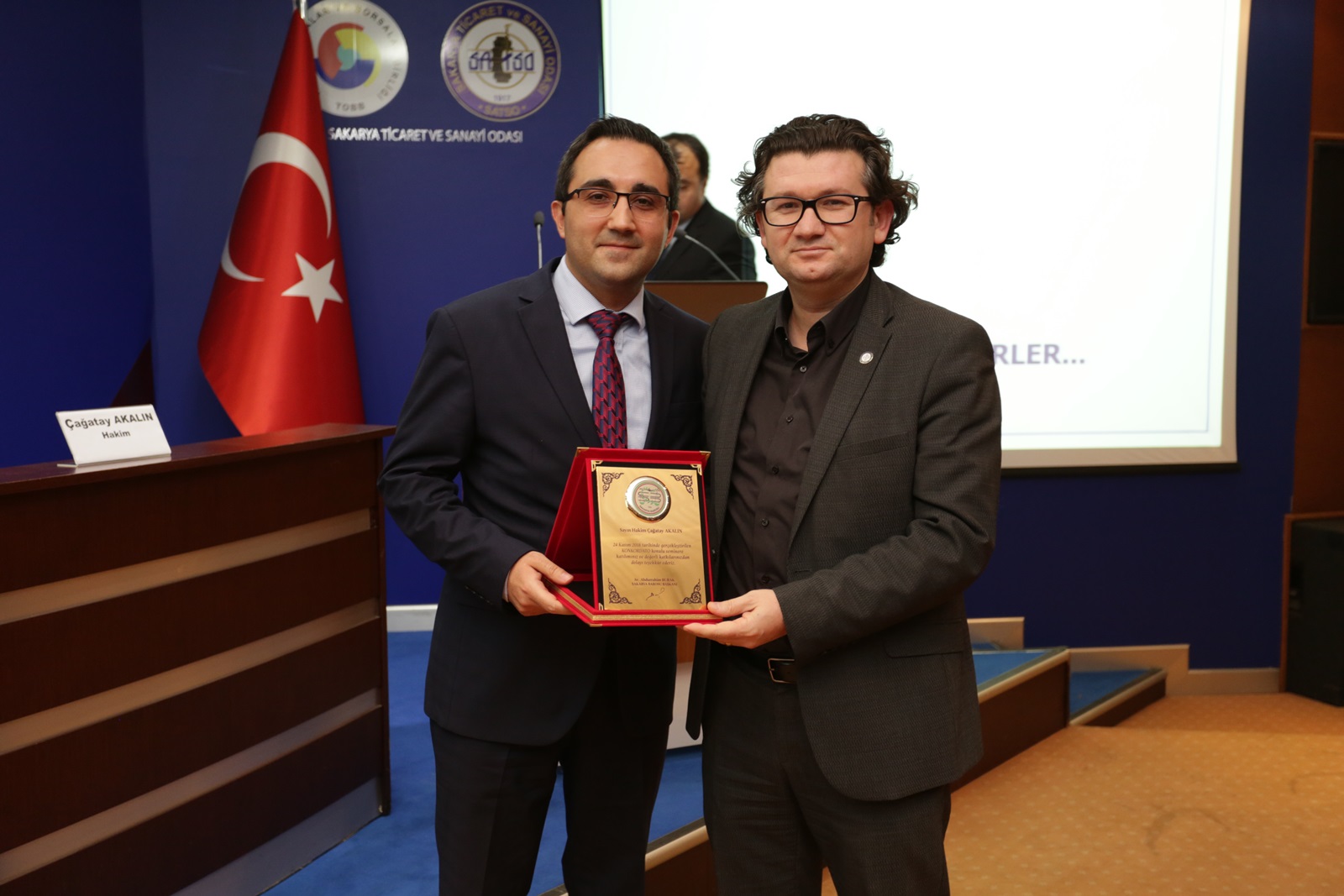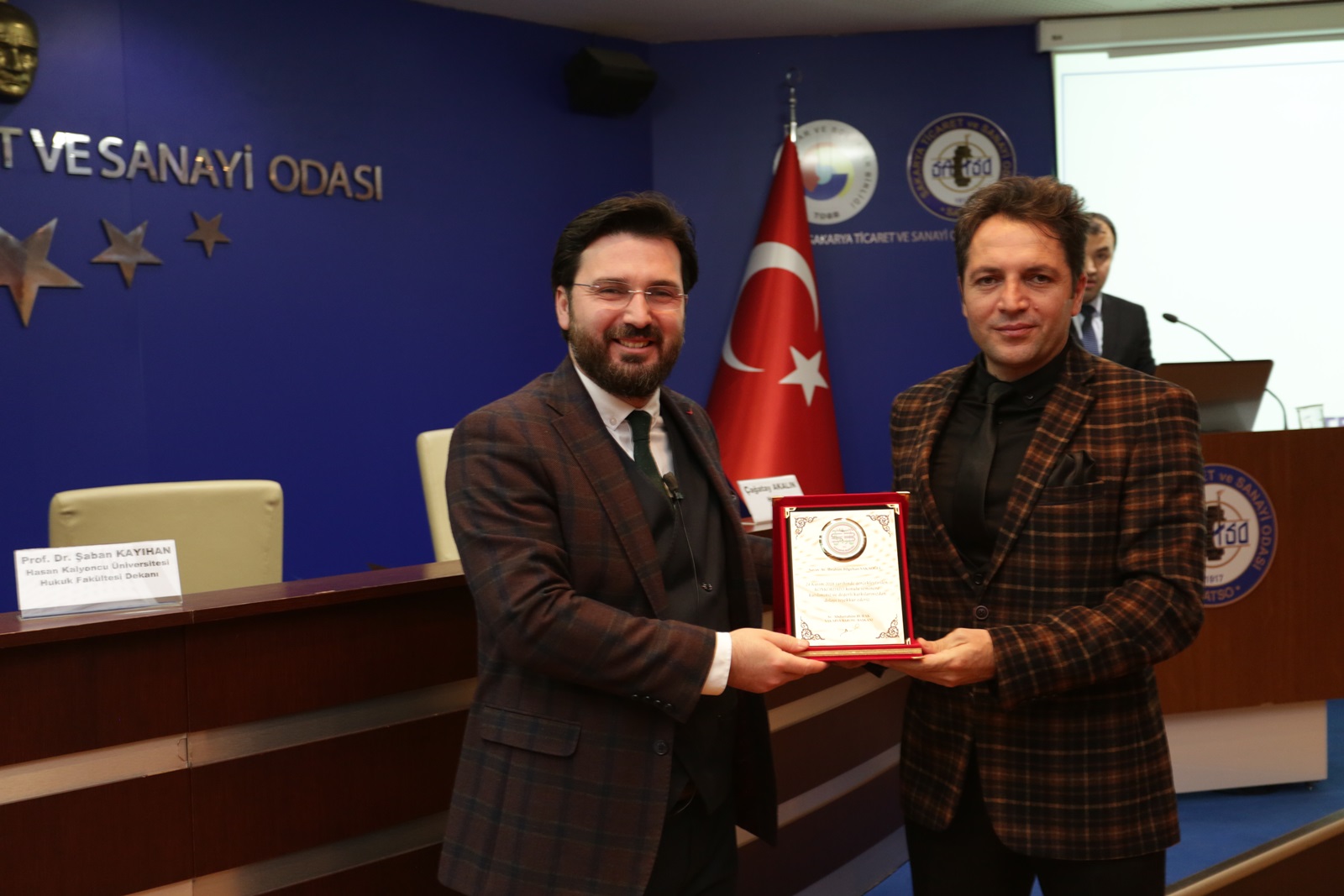 Sakarya Barosu CMK-Adli Yardım Koordinatörü Av. Alim MERT, SATSO Yönetim Kurulu Sayman Üyesi Doğan ÇATALBAŞ ve Sakarya Barosu Başkanı Av. Abdurrahim BURAK günün anısına Hasan Kalyoncu Üniversitesi Hukuk Fakültesi Dekanı Prof.Dr. Şaban KAYIHAN, Hakim Çağatay AKALIN ve Baromuz üyesi Av. İbrahim Bilgehan SAKAOĞLU’na plaket takdim ettiler.